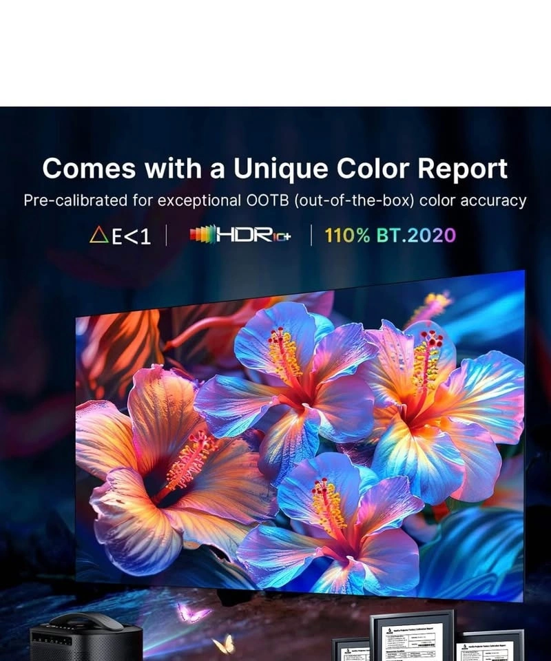 Additional Features ①Tri-LED-Laser Light Source ②Out-of-the-box color accuracy③ Hidden Fire TV Storage Slot④Dolby Vision & HDR10+ ⑤4ms Input Lag⑥Cinematic Sound with 30W Speakers ⑦110% Rec.2020 color gamut