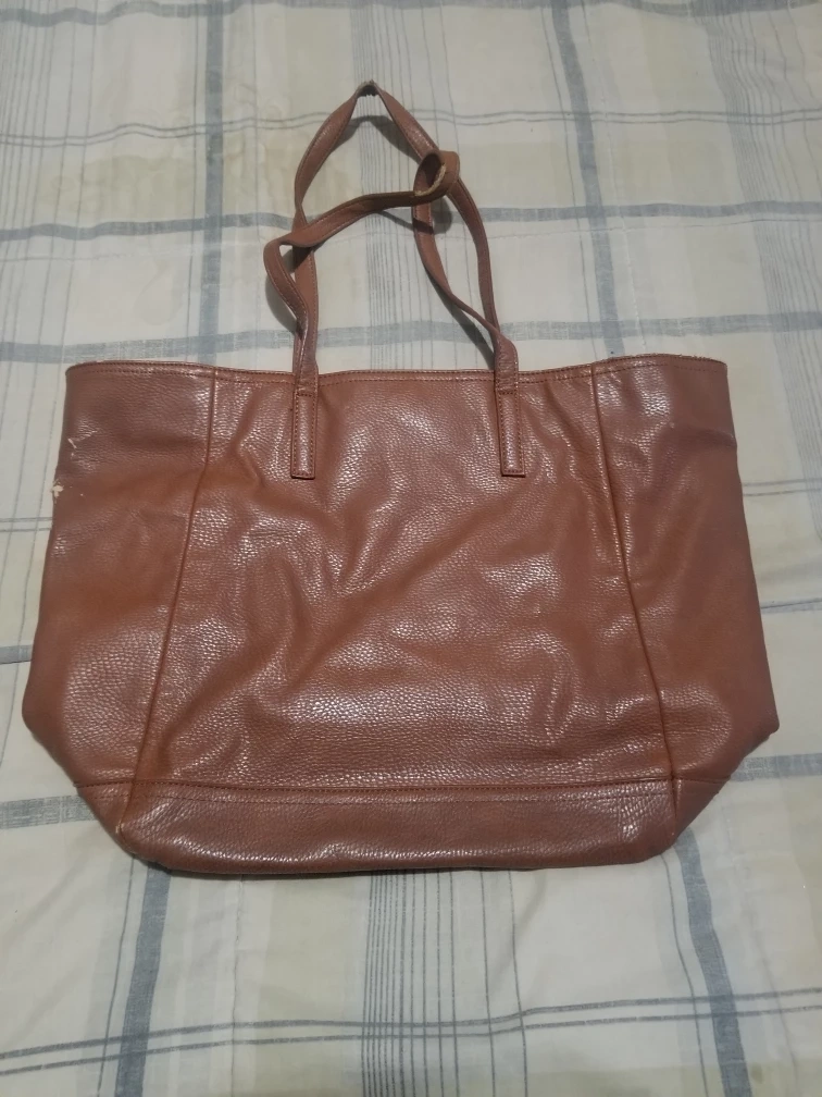 Selling a brown leather tote bag. It's a great size for everyday use. There are some signs of wear, as shown in the photos. Asking Only $8 ππ§‘ Please let me know if Interested and can Pickup Thank you π₯