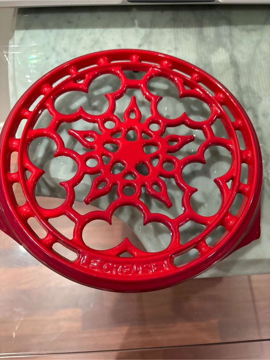 Buy & SellLe Creuset TrivetLe Creuset Trivet$74This is a red Le Creuset trivet. It's made of cast iron. Protects your surfaces from hot pots and pans!ConditionNewWHERE TO MEETCheck LocationView MapSELLERMKVaughan00 reviews0 chats·0 favorites·26 viewsSEND CHAT TO SELLERHi MK! I’m interested in your listing.Hi MK! I’m interested in your listing.Get the Karrot app to chatSign In to chat