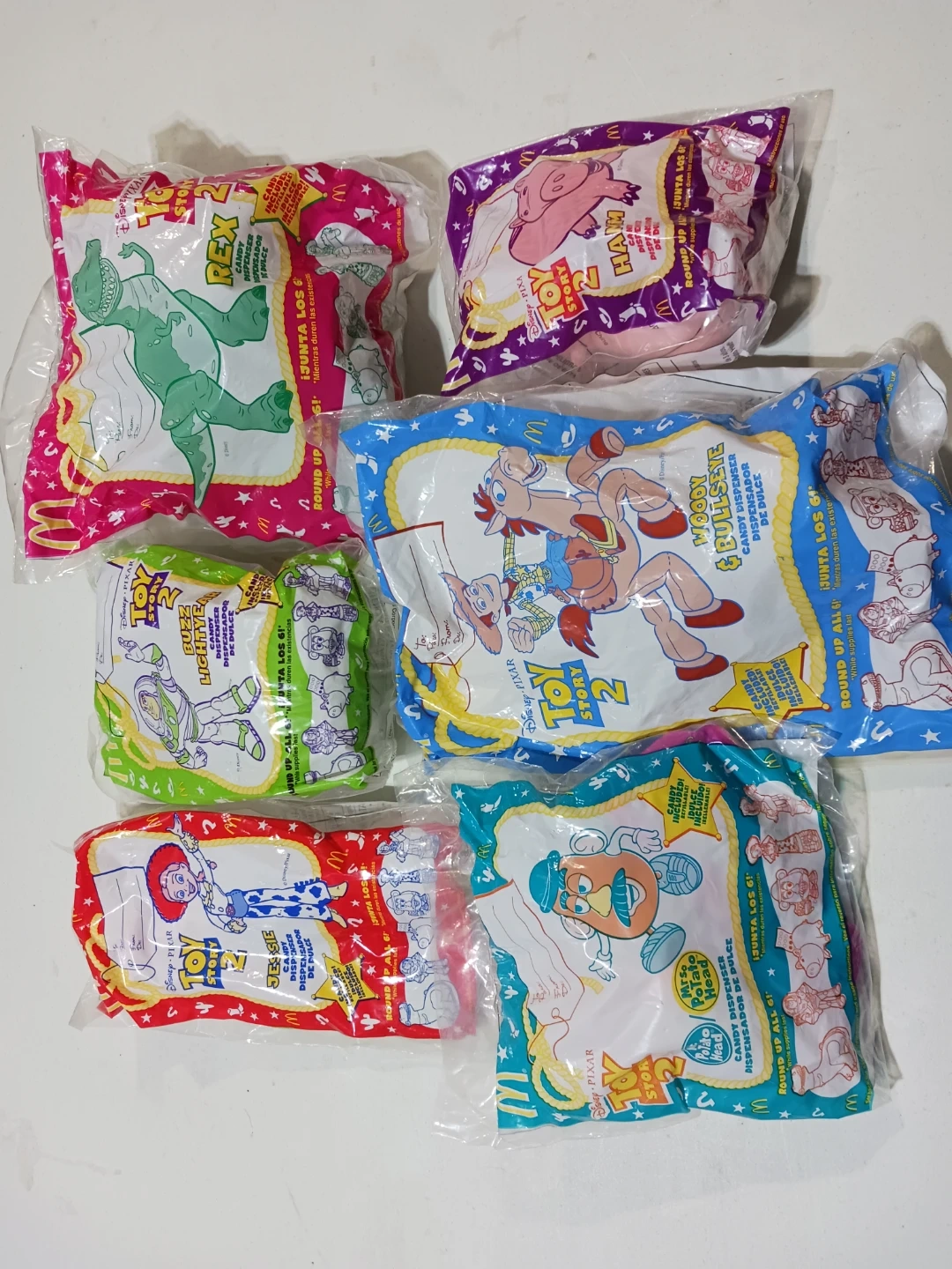 Selling a set of McDonald's Toy Story candy dispensers. Includes characters like Rex, Ham, Woody & Bullseye, Buzz Lightyear, Jessie, and Mr. Potato Head. Perfect for collectors or Toy Story fans