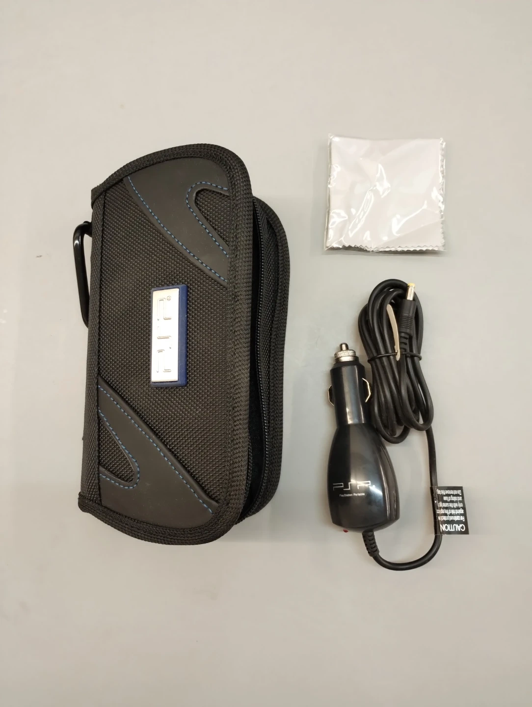 Selling a PSP (PlayStation Portable) car charger. It comes with a case and a cleaning cloth. Perfect for charging your PSP on the go!