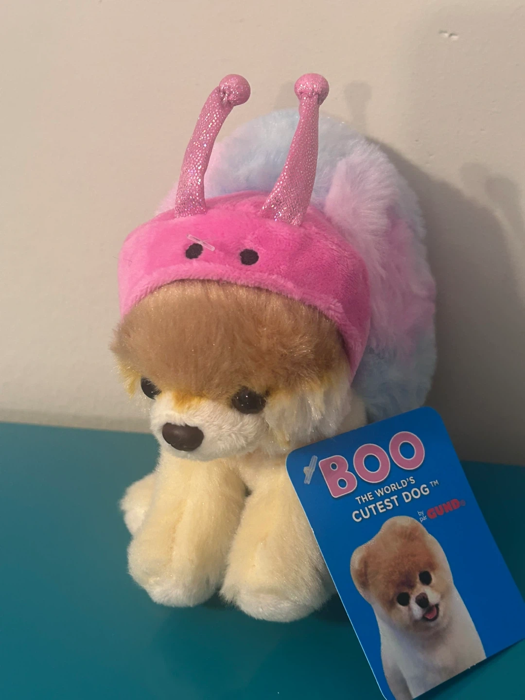 Brand new authentic GUND Boo – The World’s Cutest Dog™ plush dressed in a pastel snail costume. Approx 6” long. This rare discontinued style features soft plush fur, glittery antennae, and the original tag still attached. Smoke-free home. $15-📍 Pick up near Yonge & Steeles