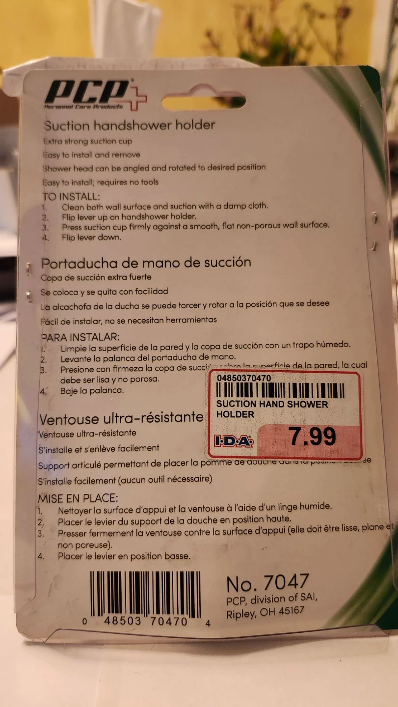 Selling a brand new PCP Suction Handshower Holder, still in its original packaging! This holder features an extra strong suction cup and allows the shower head to be angled and rotated. Easy to install, no tools required. Originally bought for $7.99.