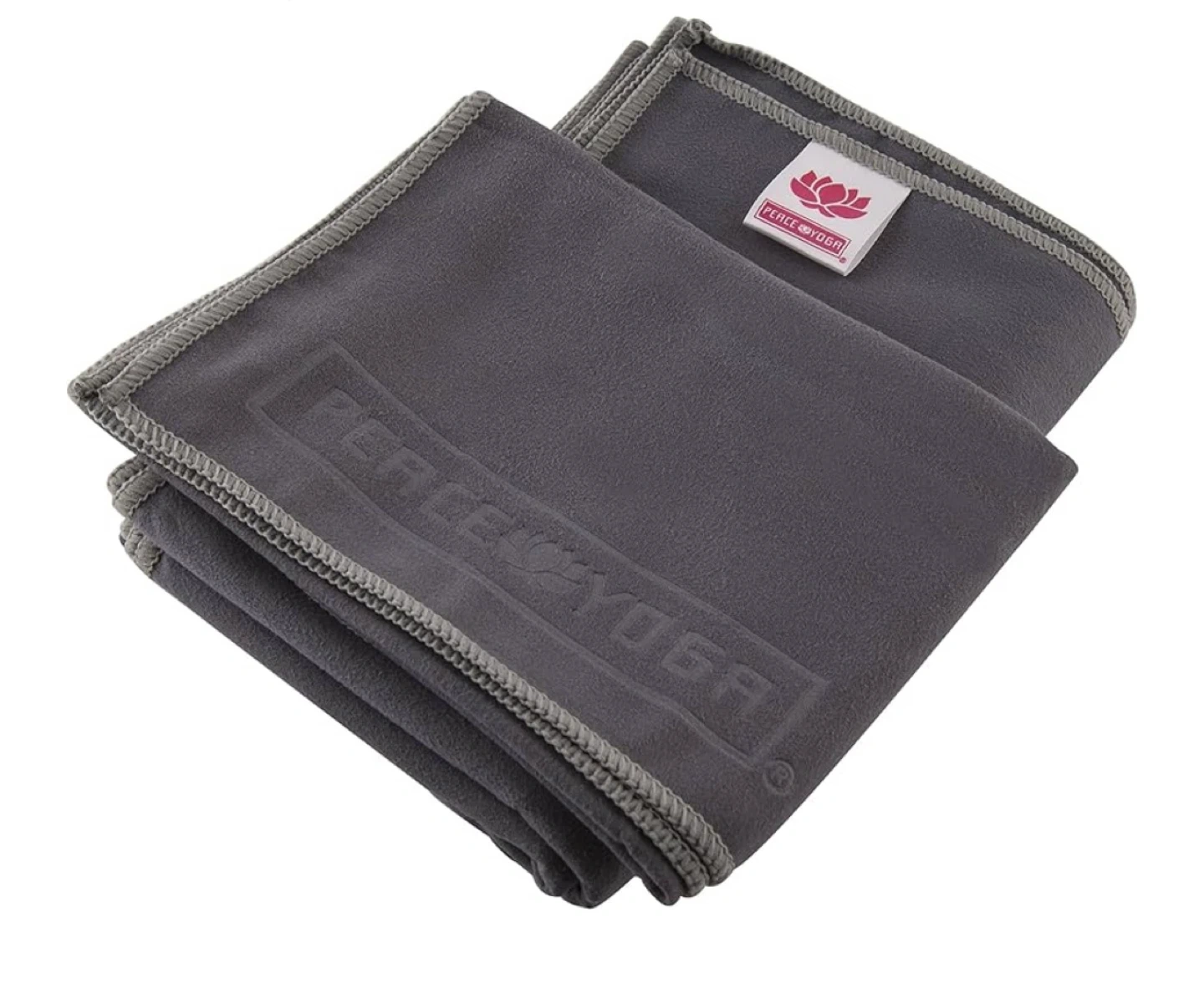 I'm selling a brand new Peace Yoga towel combo in gray suede! It's still in its original packaging. The combo includes one 24" by 72" towel and one 15" by 24" towel. It's lightweight and ultra-absorbent. It also increases grip and is anti-slip