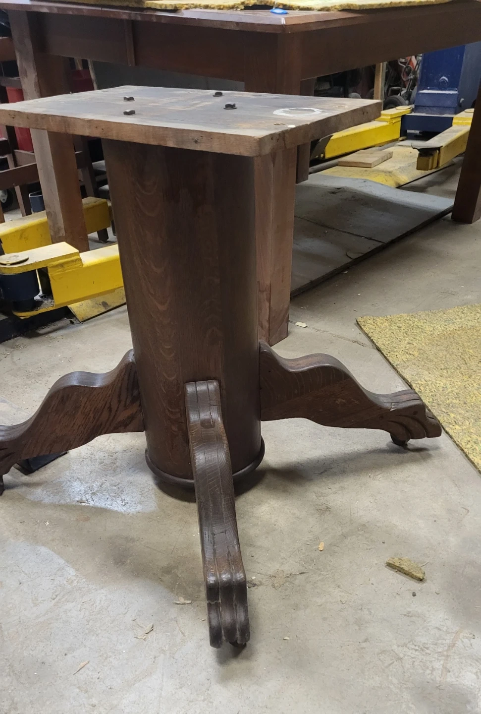 Selling a unique, antique round table! 44.5" in diameter. It features a sturdy wooden construction and distinctive claw feet. TLC goes a long way with such an Incredible piece. It would make a great addition to any dining room or living space