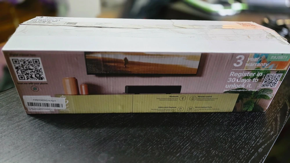 Selling a Majority Snowdon II Soundbar that's practically brand new! It comes with its original box and all components. Enjoy enhanced audio for your TV or other devices with this sleek soundbar.