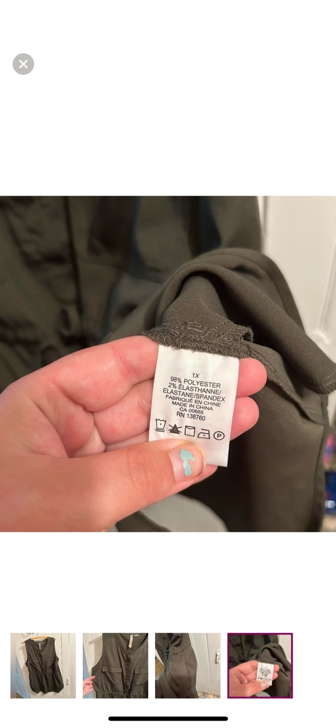 Penningtons brand. Sleeveless button down tunic with draw string waist. Pockets. Olive green in colour. Size 1x. Brand new condition