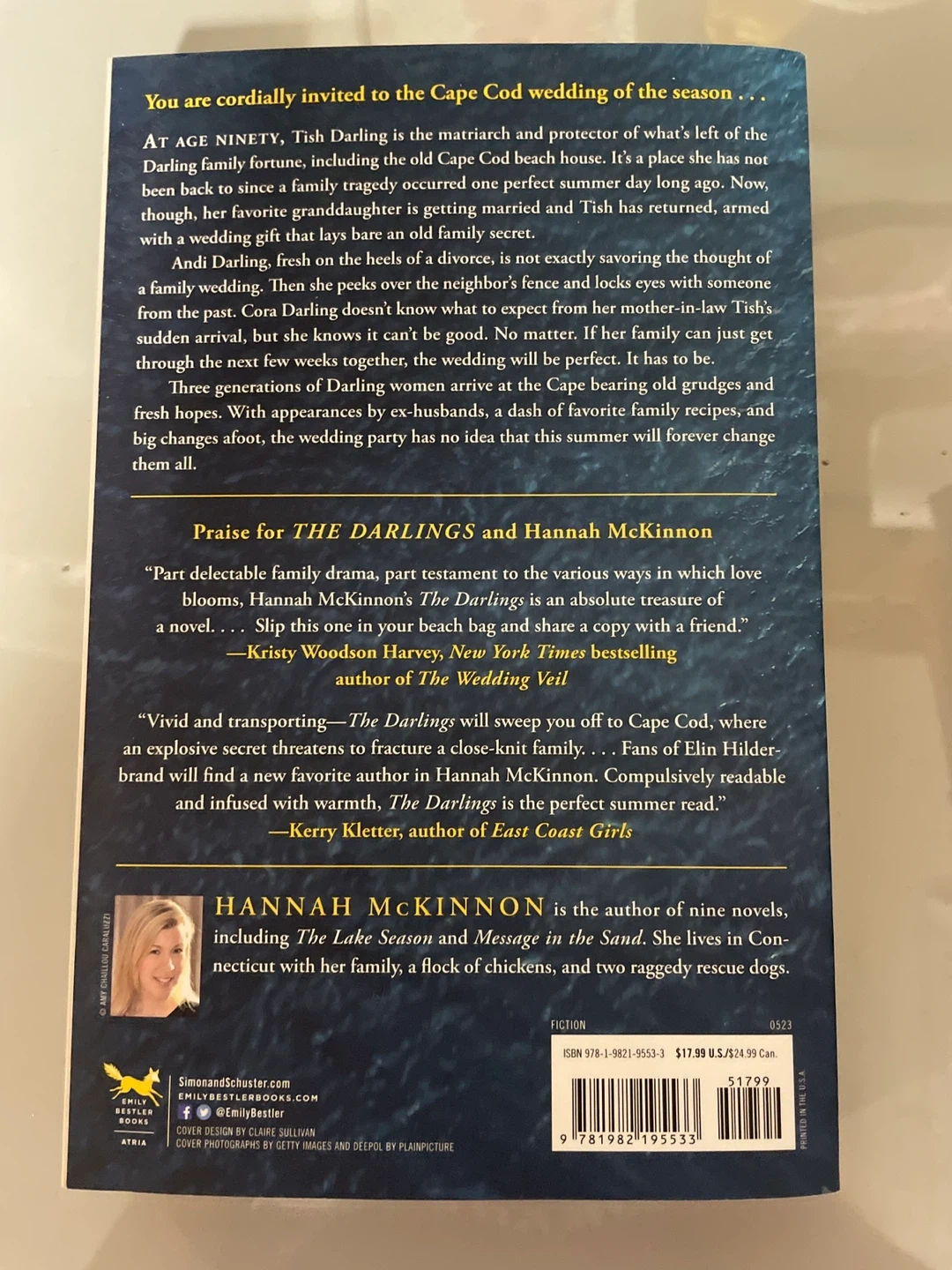Selling a novel called The Darlings by Hannah McKinnon! It's a perfect beach read. This book is about three generations of Darling women arriving at the Cape bearing old grudges and fresh hopes
