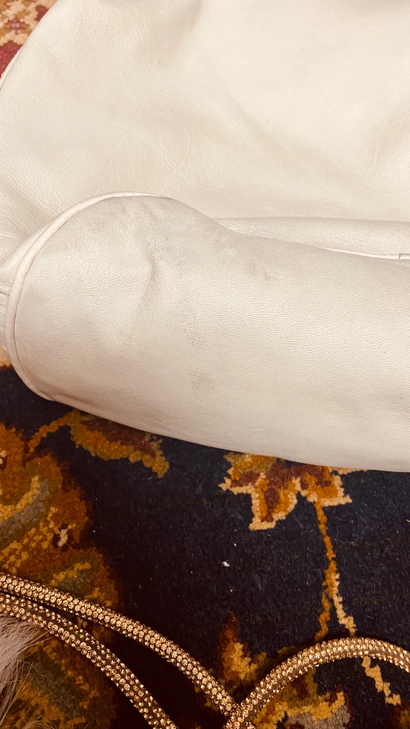 Here's a stylish Moschino shoulder bag made of white leather! It's got a unique design with gold accents and a comfortable shoulder strap. Great for adding a touch of elegance to any outfit