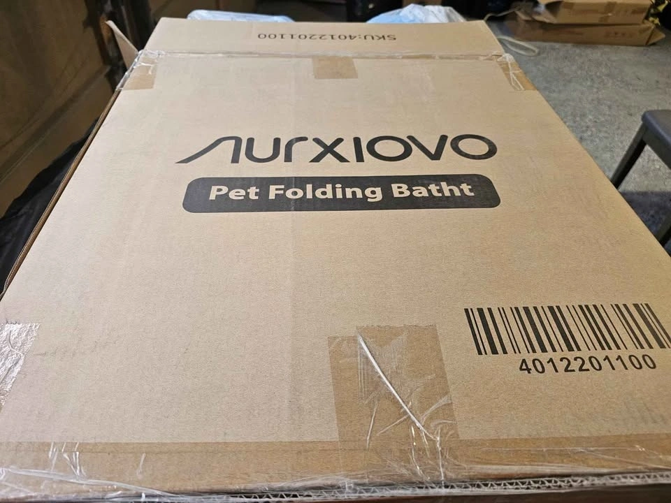 Keep your furry friend clean with this brand new, grey Nurxiovo pet folding bath, complete with a convenient stand and folding design for easy storage. Still sealed in its original box, this portable pet bath is perfect for indoor or outdoor use.