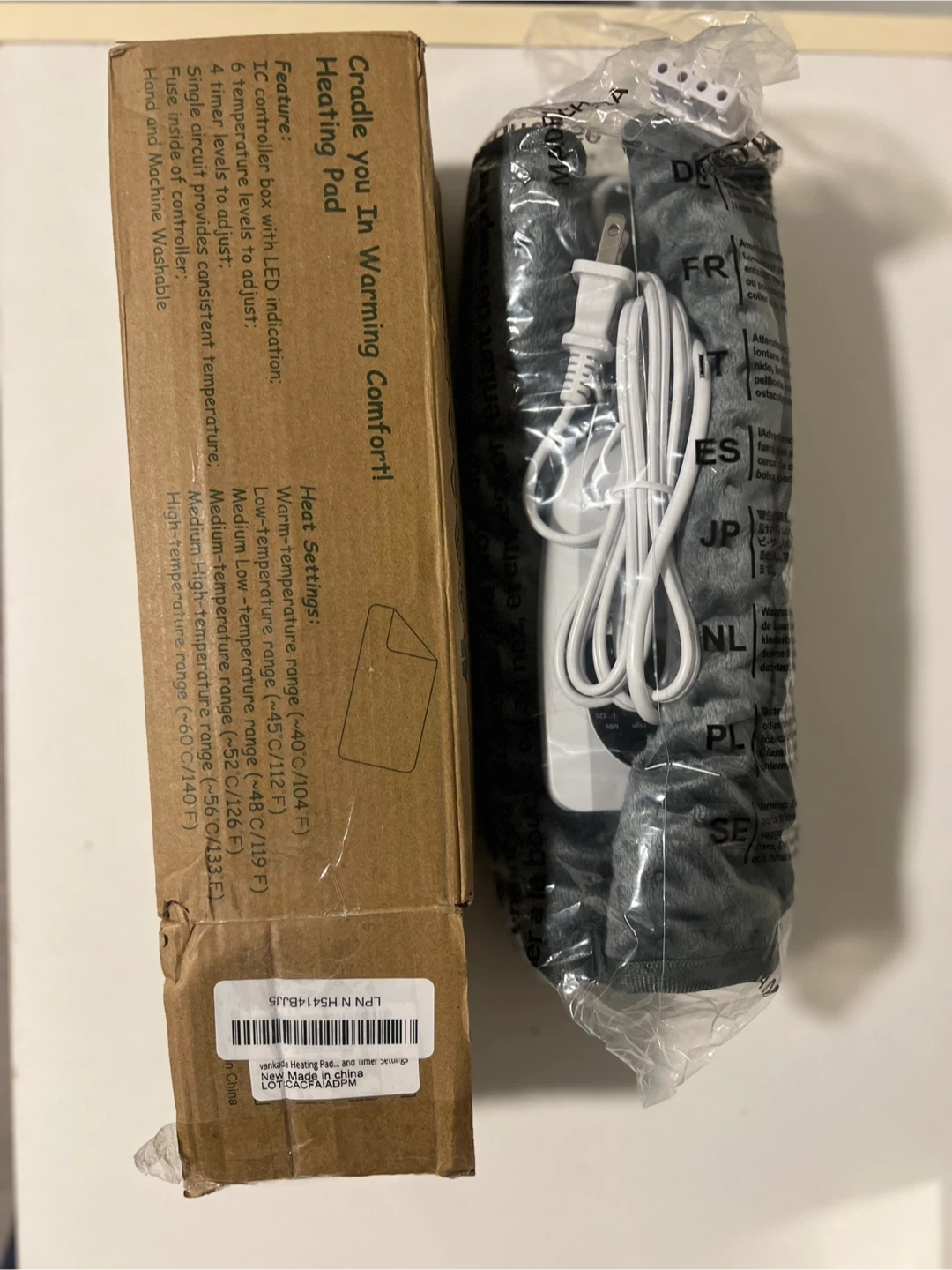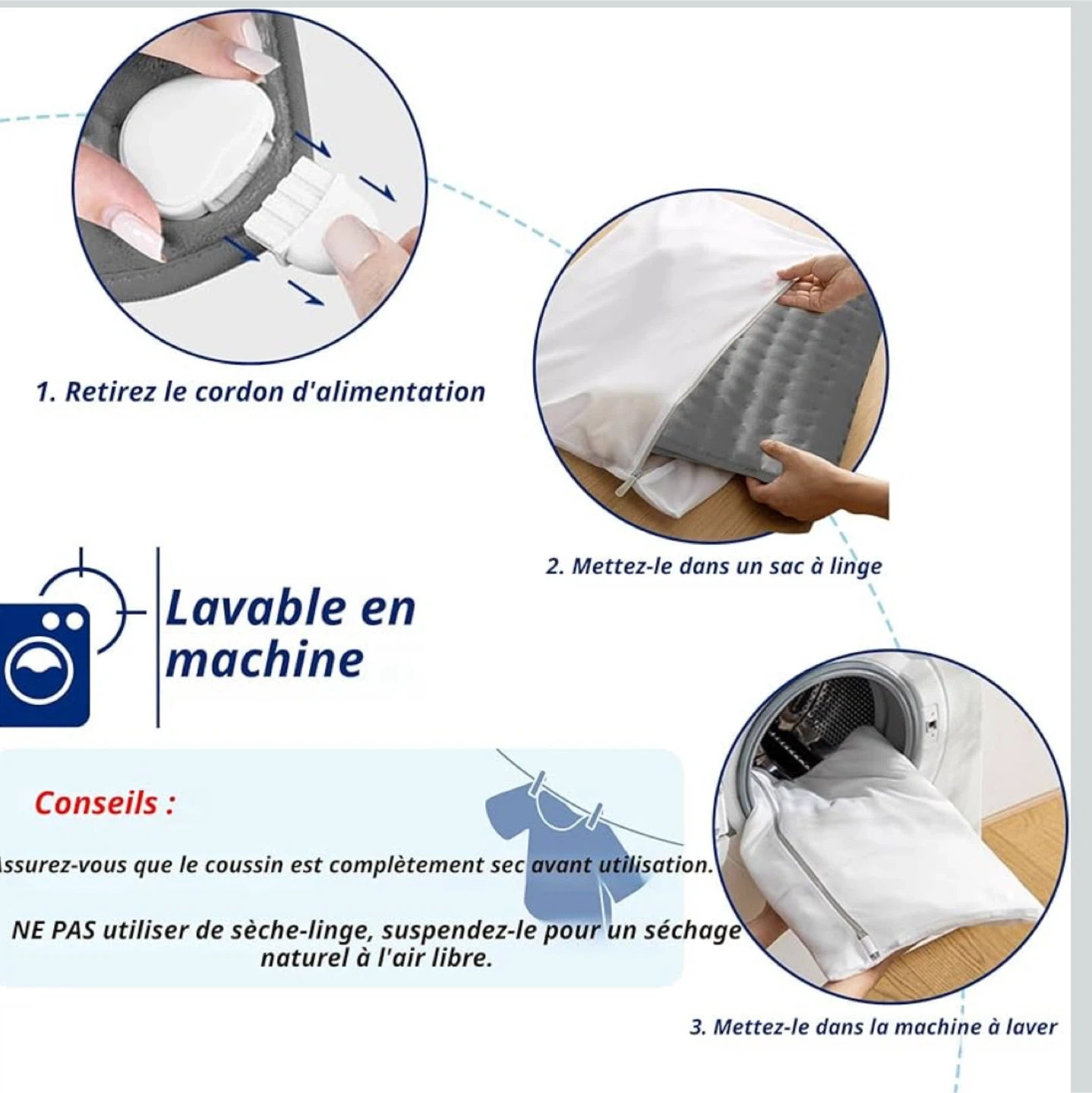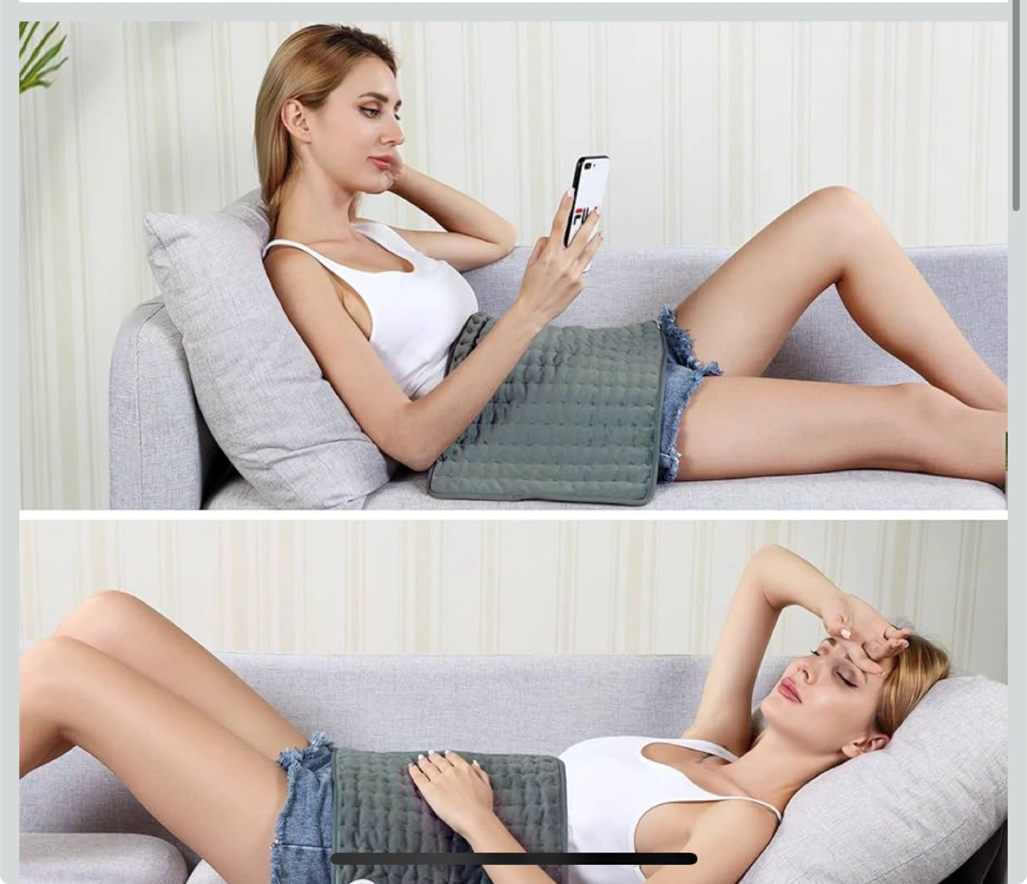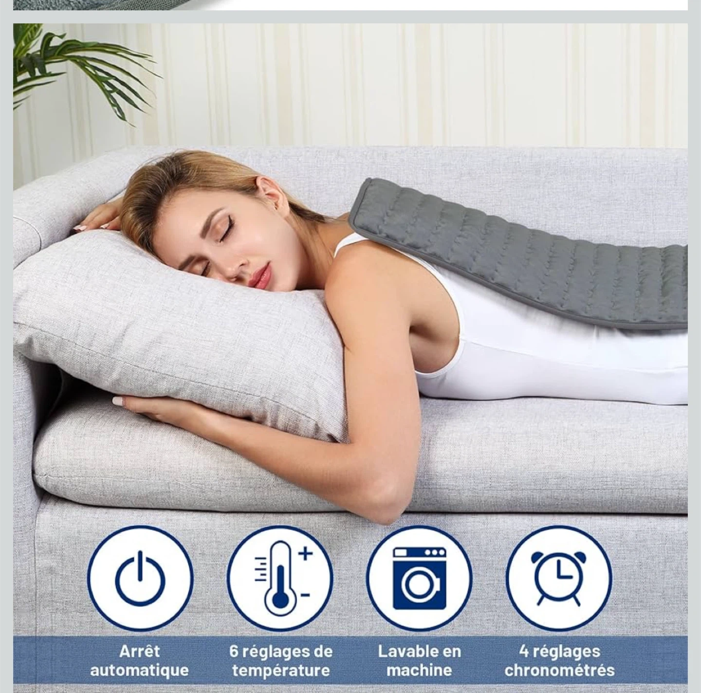 This heating pad comes with a portable controller for easy use. It features multiple heat settings, ranging from 40°C to 60°C, and timer settings from 30 to 120 minutes. It's also machine washable for easy cleaning!