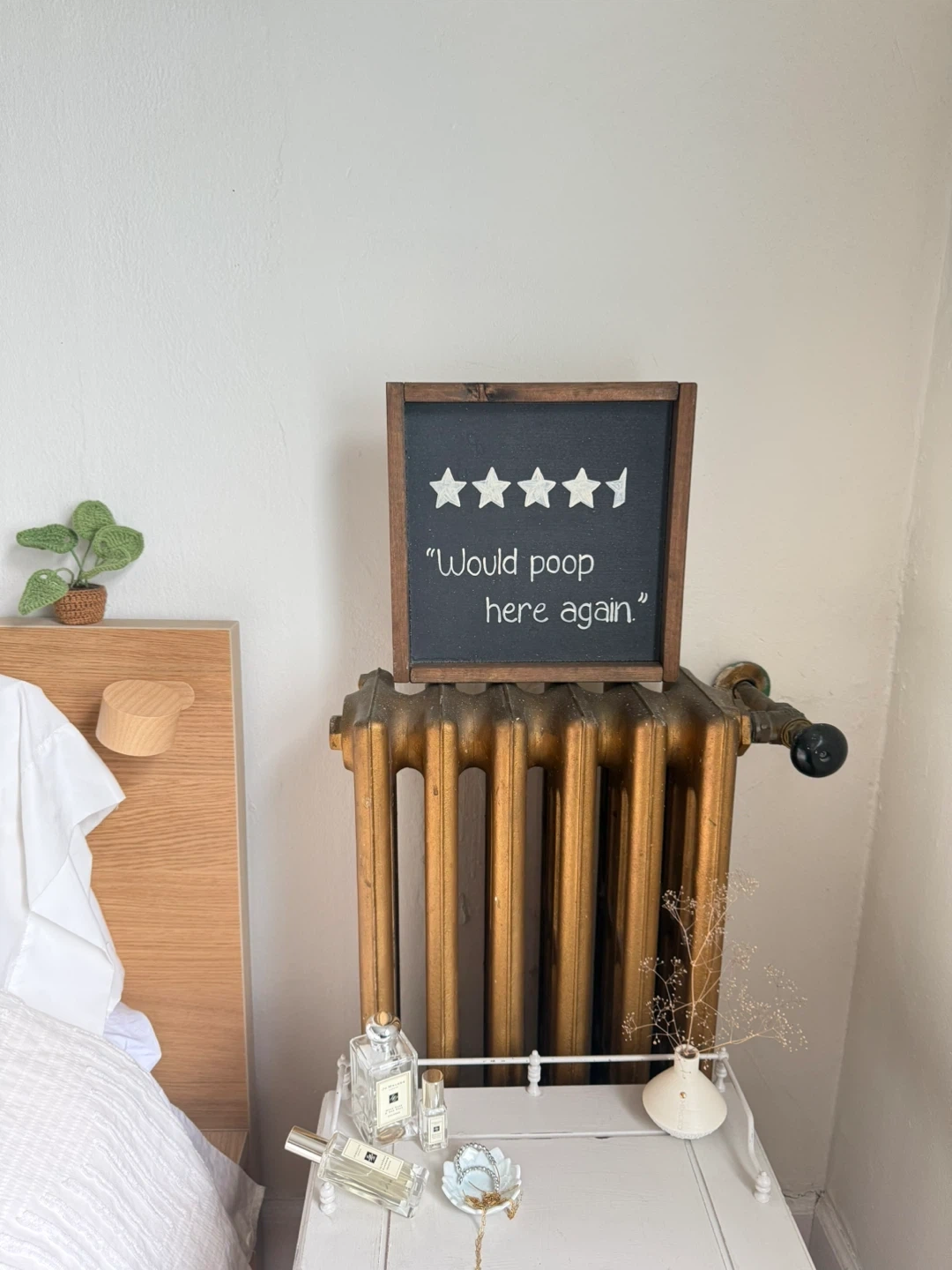 Surprise and delight your guests when they visit the bathroom with this funny, cheeky sign.