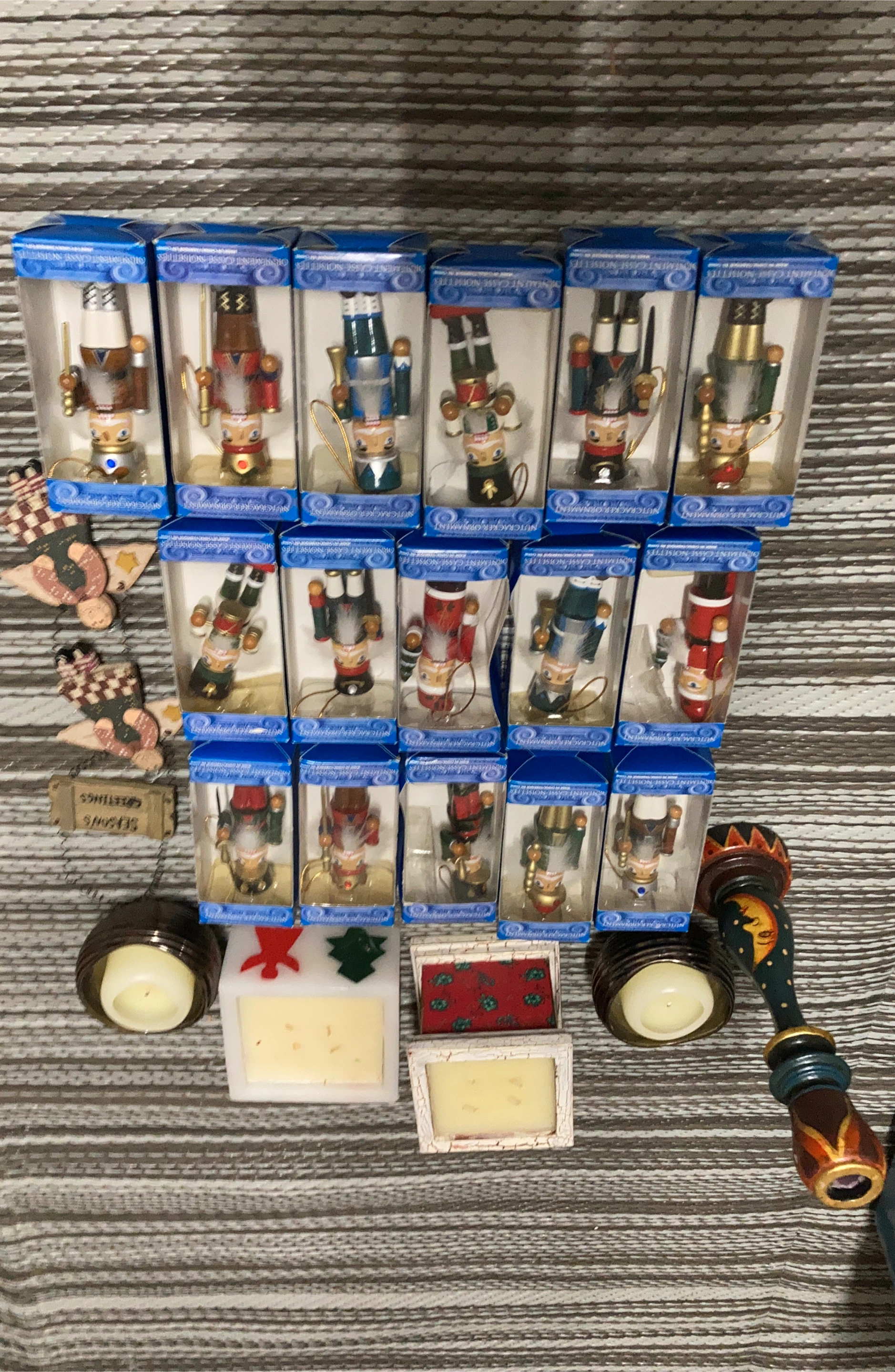 Selling a collection of charming nutcracker ornaments, each still in its original packaging. These festive decorations are perfect for adding a touch of holiday cheer to your home. They're in great condition and ready to be displayed!