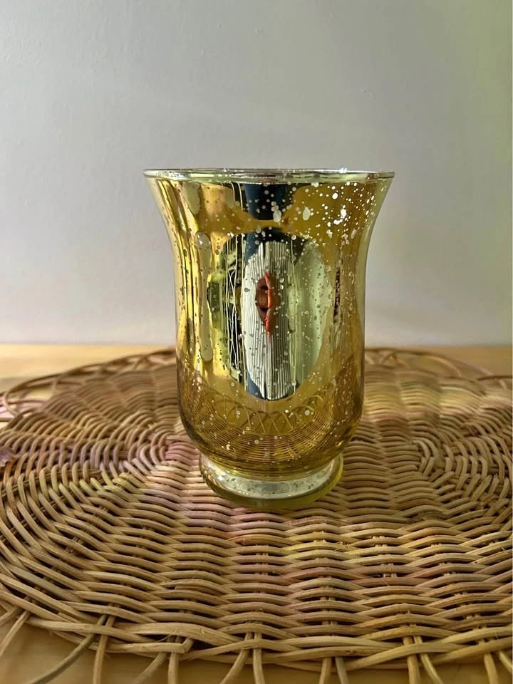 Buy & SellMercury glass in gold candle holder.Mercury glass in gold candle holder.$5Gold mercury glass candle holder, can also be used for flowers. Measurements in photos.WHERE TO MEETCheck LocationView MapSELLERShana StrihaTown Centre00 reviews0 chats·0 favorites·1 views