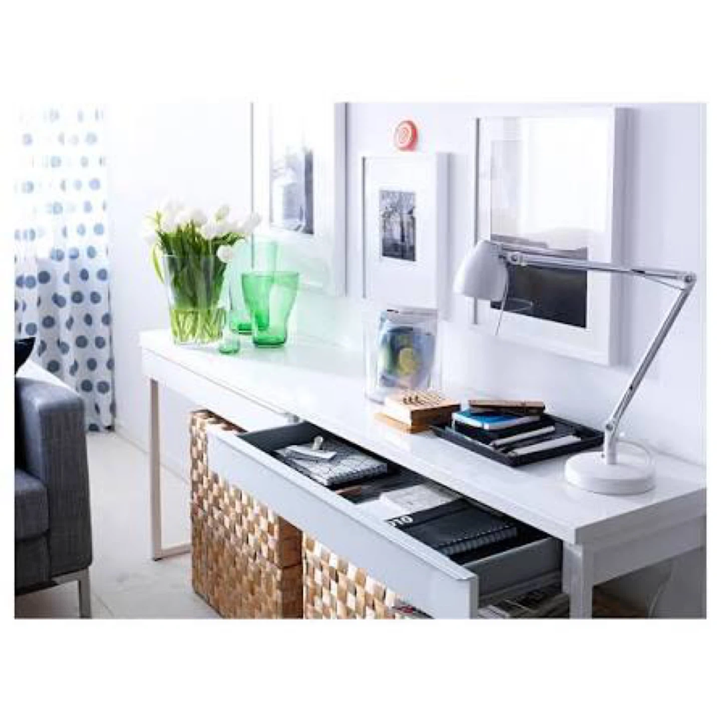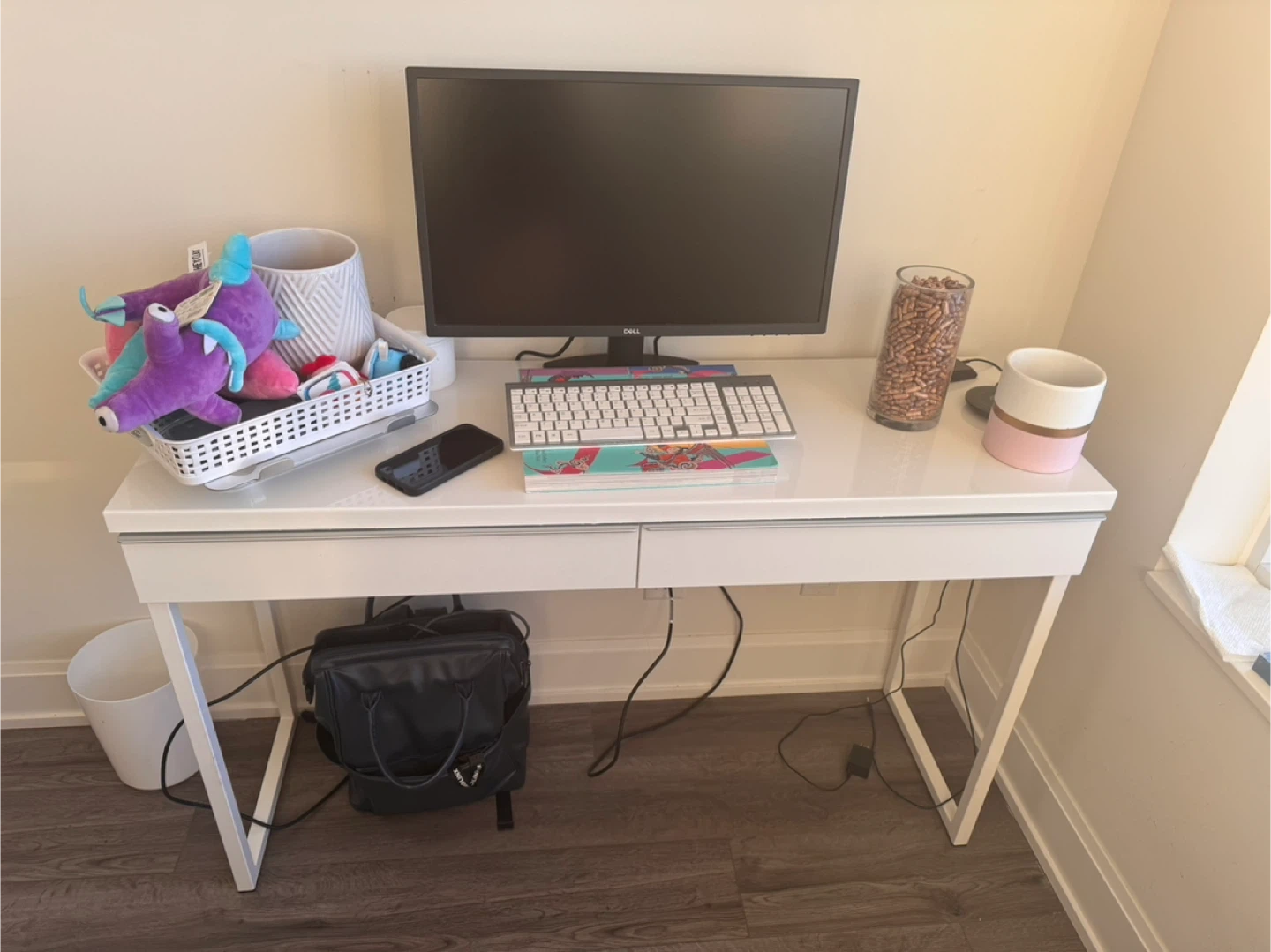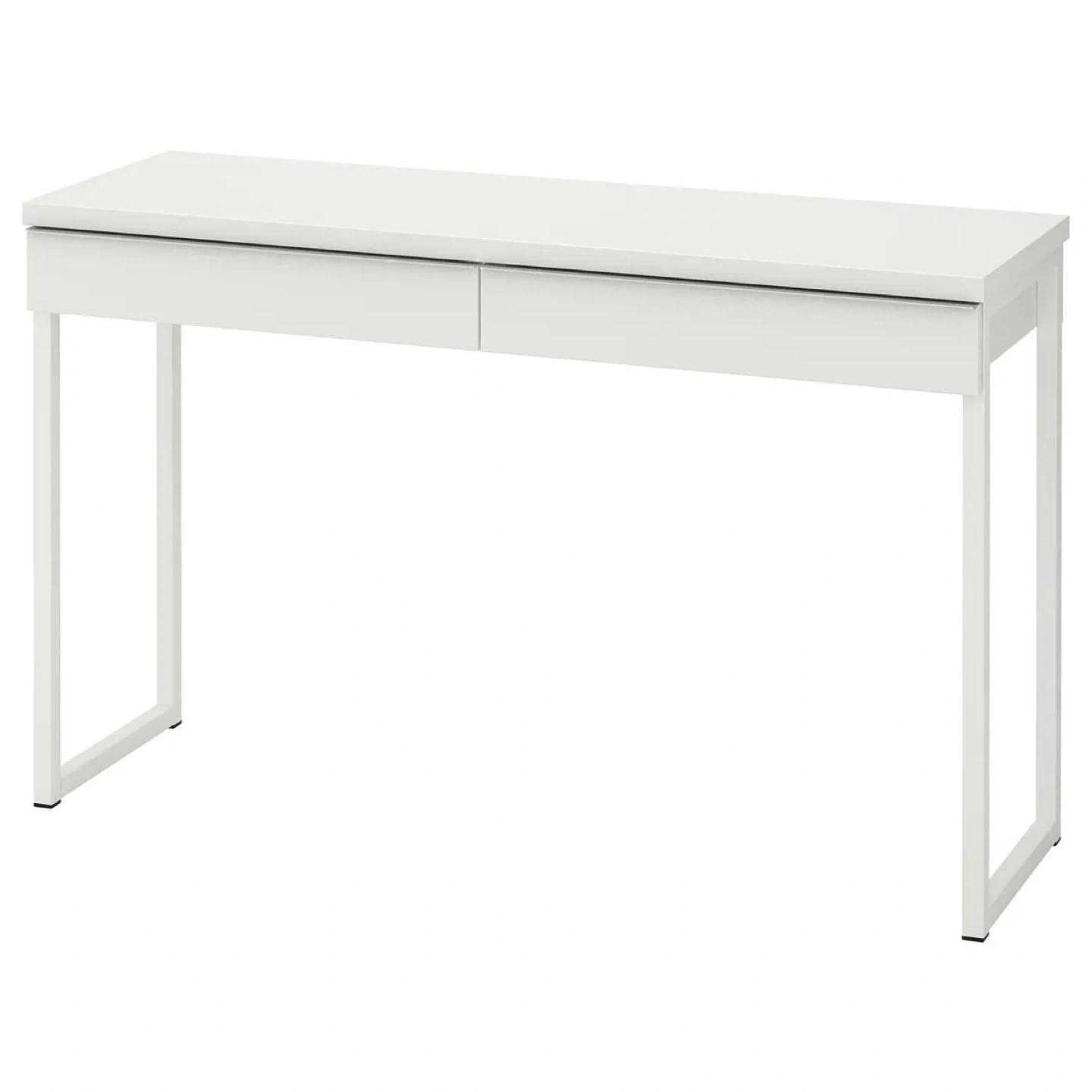 Selling a white IKEA Hemnes desk! It's in great shape and perfect for a home office or study space. The desk has a clean and simple design with two drawers for storage.