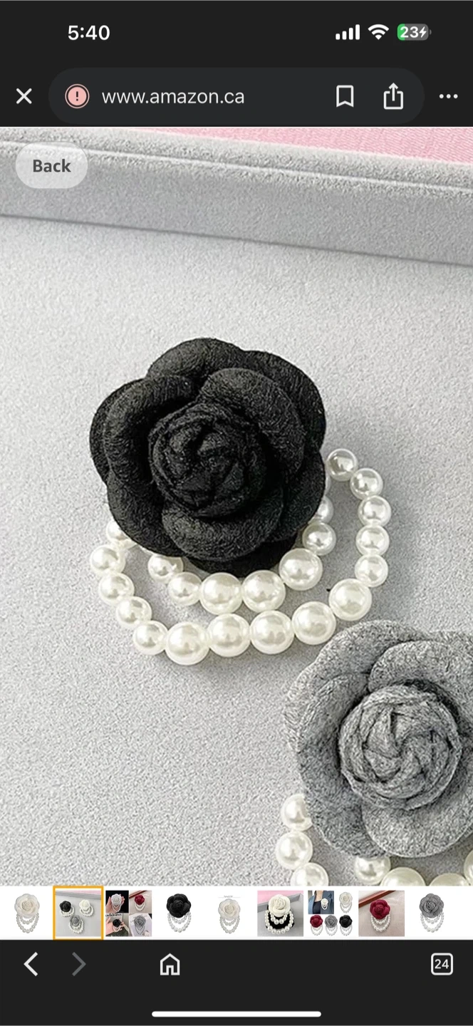 Buy & SellCamellia Flower Fabric Brooch with Pearls (Brand New)Camellia Flower Fabric Brooch with Pearls (Brand New)$10Elegant black flower brooch adorned with pearl strands Perfect for adding a touch of sophistication New Pin Approximately 7cm/2.76”ConditionNew0 chats·0 favorites·2 viewsSELLERverifiedKatOakwood Village30422 reviewsWHERE TO MEETOakwood Village or King& Bathurst