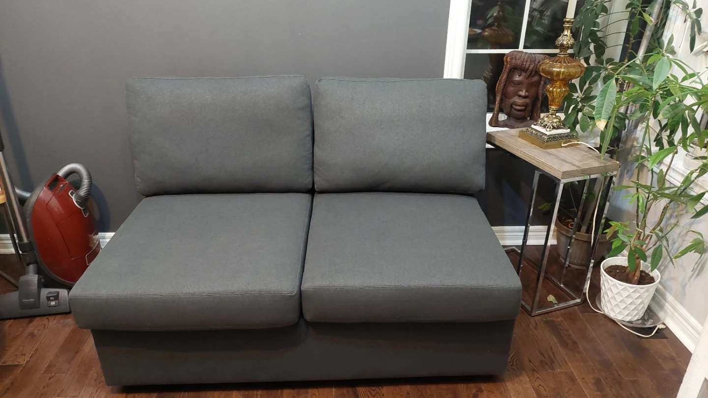 sofa section in great condition! It's a stylish and versatile piece that can be easily integrated into any living space. The sofa section is a lovely gray colour and is made of a durable material. Perfect for creating a cozy seating area or adding extra seating to your home