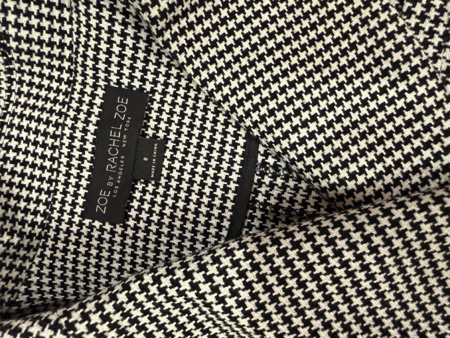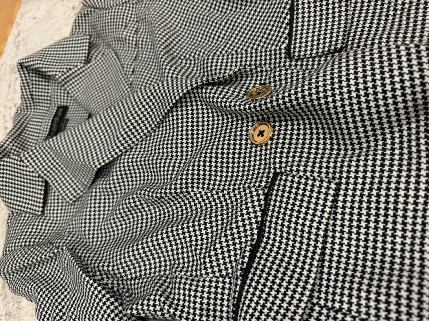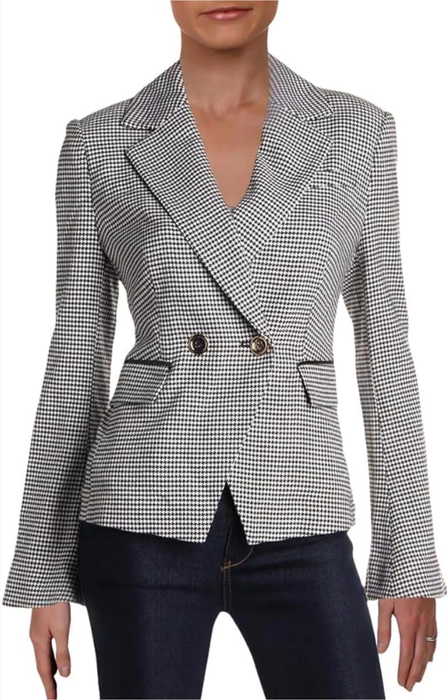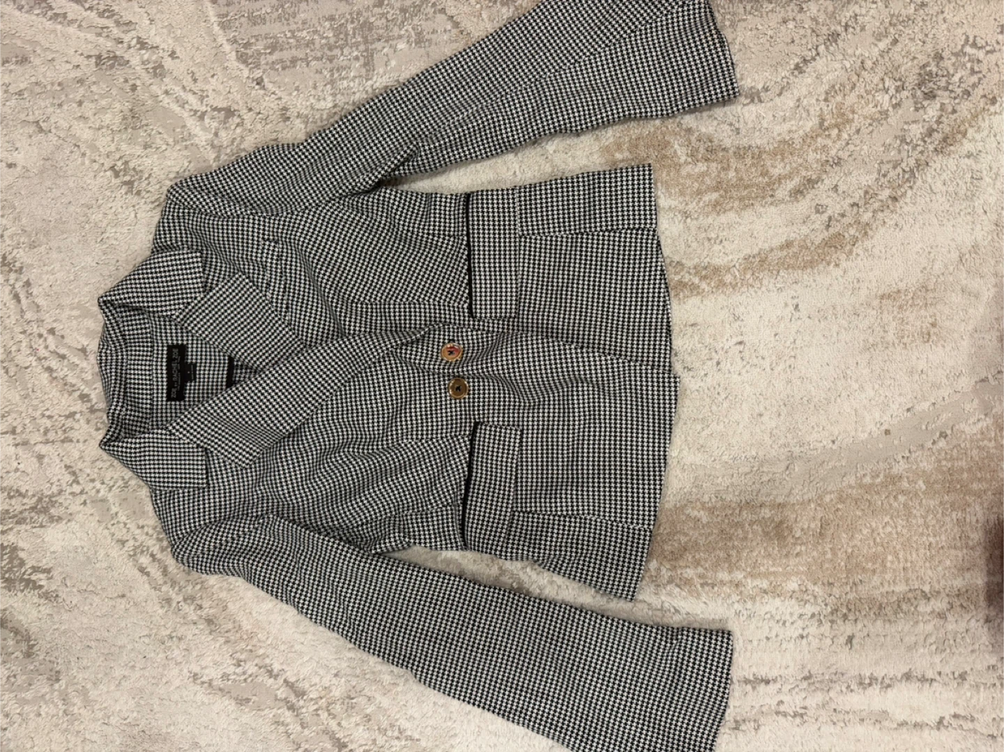 Selling a stylish Rachel Zoe blazer in a classic houndstooth pattern! This blazer features a double-breasted design with gold-tone buttons and flared sleeves. It's perfect for adding a touch of sophistication to any outfit. Size 8 but fits like a 6. Never worn, basically new.