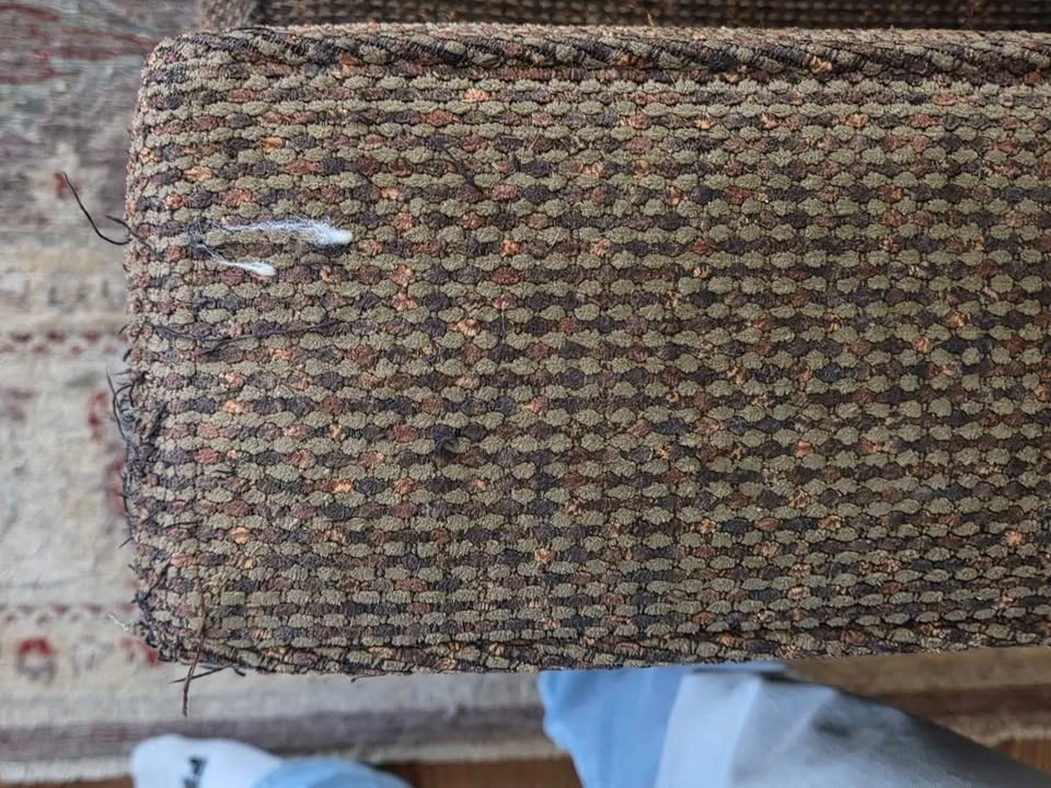 In good shape heavy frame. Cat clawed at the arm but still solid. Frame is far heavier that average quality furniture. This was a high end living room set and cost $6,500 new