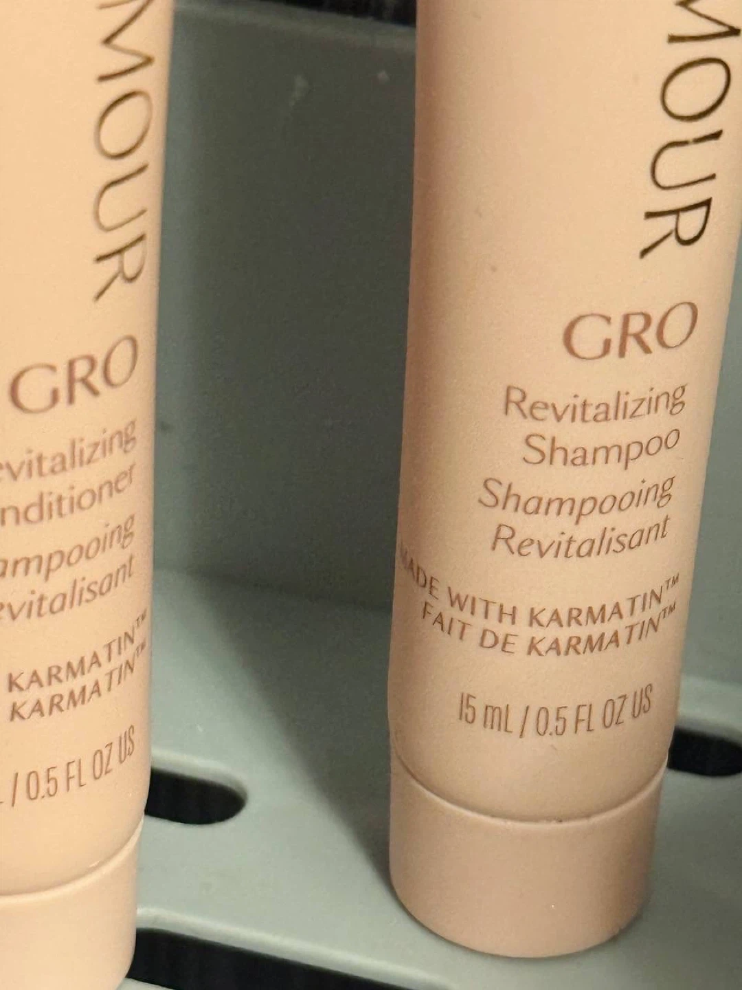 I’m selling a new mini sample set of Vegamour GRO Shampoo & Conditioner. Each bottle is 15 ml, perfect for trying out the products or for travel.