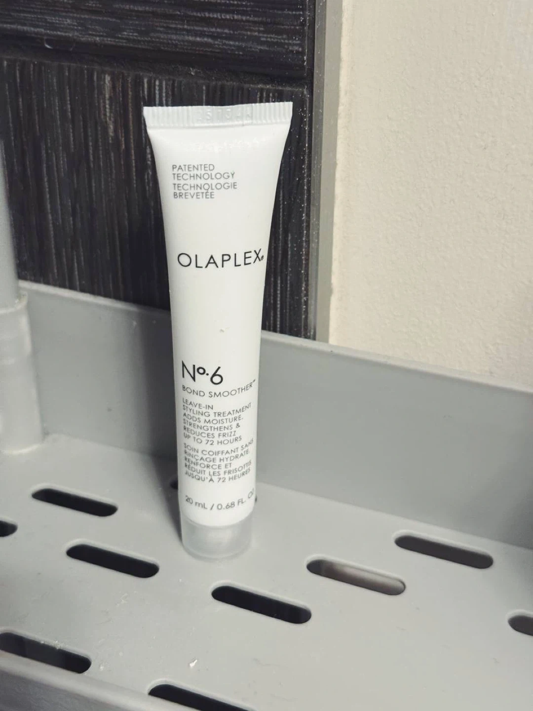 Selling a tube of Olaplex No. 6 Bond Smoother. It's a leave-in styling treatment that adds moisture, strengthens, and reduces frizz for up to 72 hours. Perfect for keeping your hair smooth and manageable!