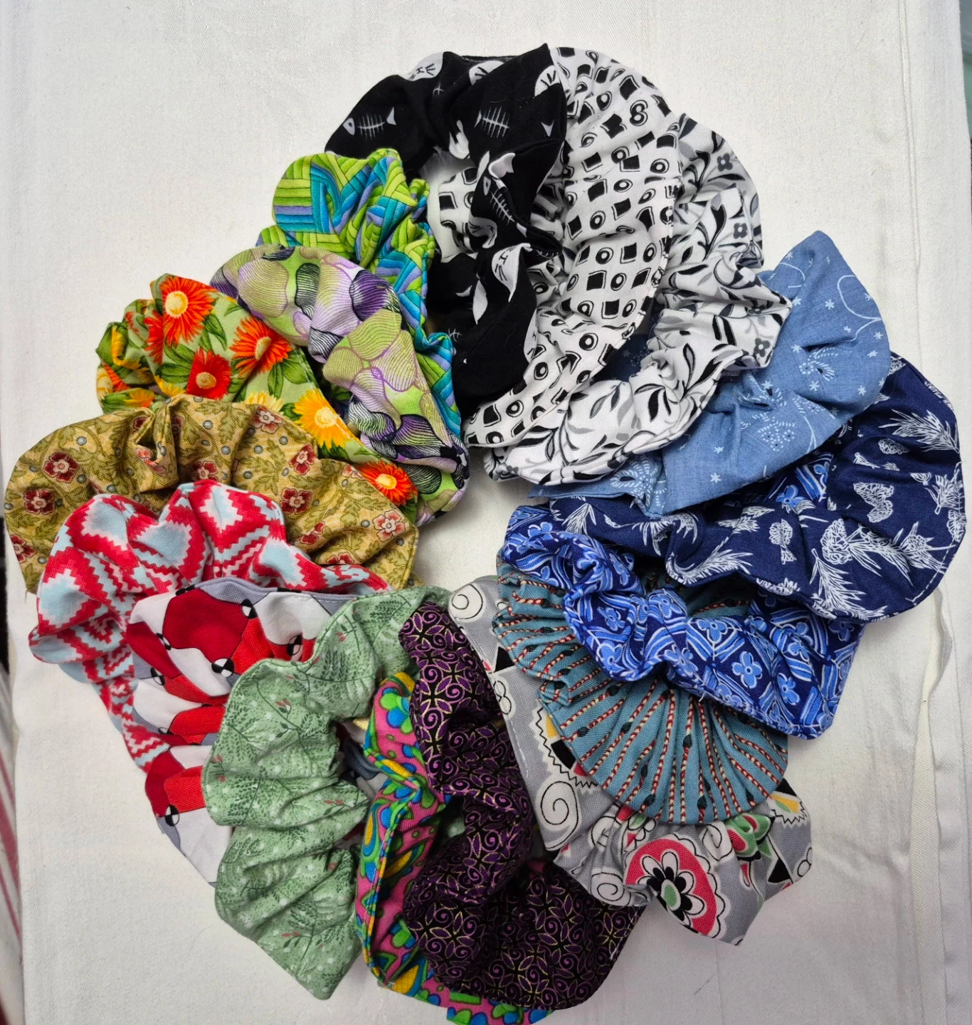 I have a collection of handmade fabric scrunchies for sale! There are a variety of colours and patterns available, perfect for adding a little flair to your hair. They're in great condition and ready to use!