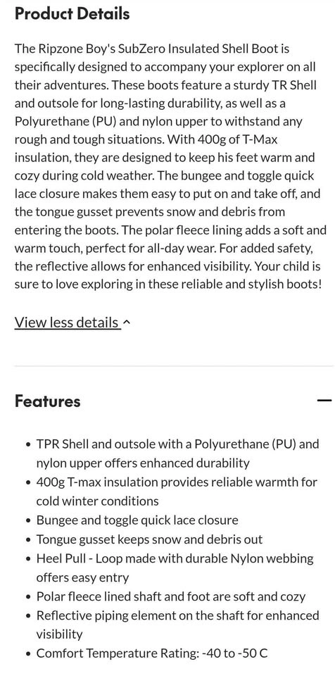 We love these boots and always buy the next size every year, they keep the kids feet very warm and easy to put on and take off.