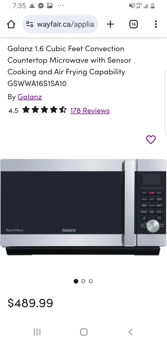 Selling a Galanz 3-in-1 microwave with convection oven and air fryer! It has sensor cooking and air frying capabilities. It's a 1.6 cubic foot countertop microwave. This is the model GSWA16S1SA10