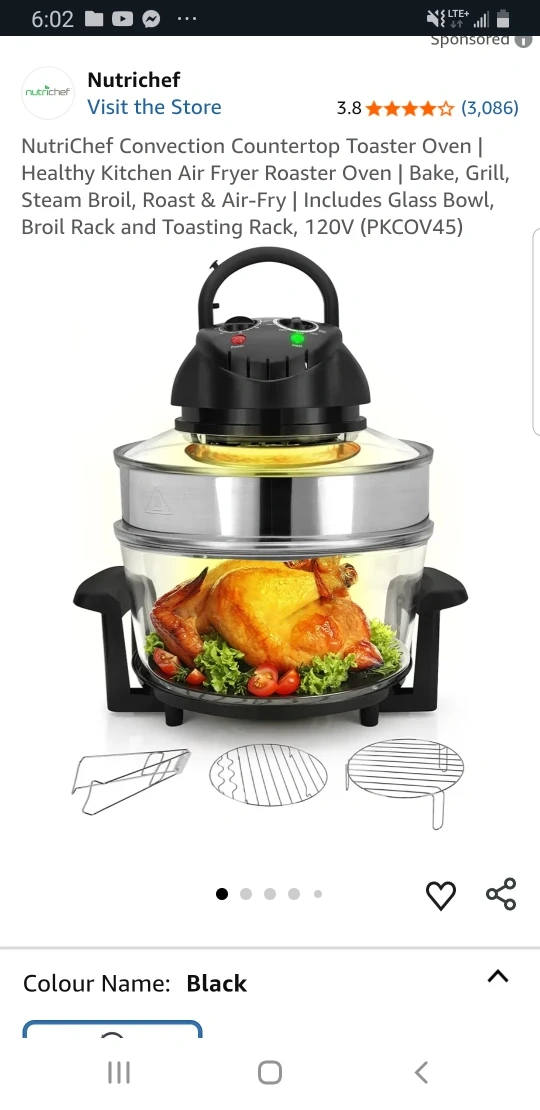Selling a NutriChef Convection Countertop Toaster Oven in black! It's a healthy kitchen air fryer, roaster oven, and includes a glass bowl, broil rack, and toasting rack. Also comes with food racks and tongs! Retails for $172.31