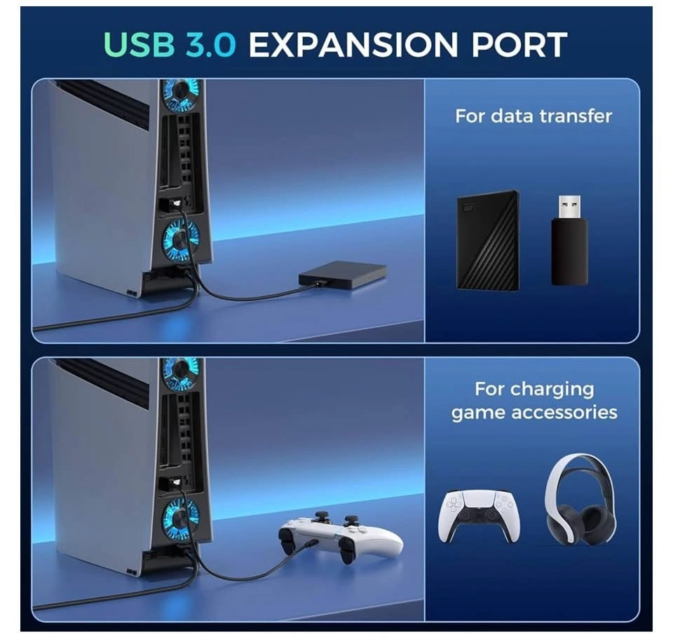 Cooling Fan for PS5 Pro, Efficient Cooler Fan with Adjustable Speed/LED Light, PS5 PRO Temperature Controlled Cooling Accessories with USB 3.0 Port