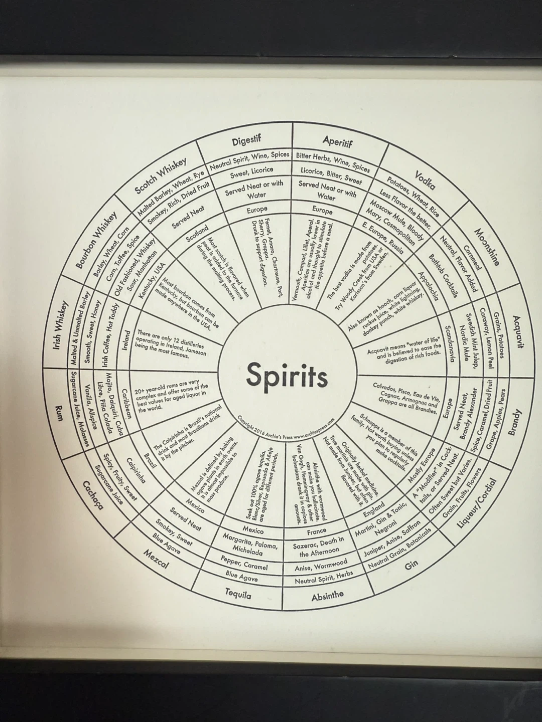 Spirits wheel in square letterpress print from Canadian printmaker, in square Pottery Barn black frame 🥃