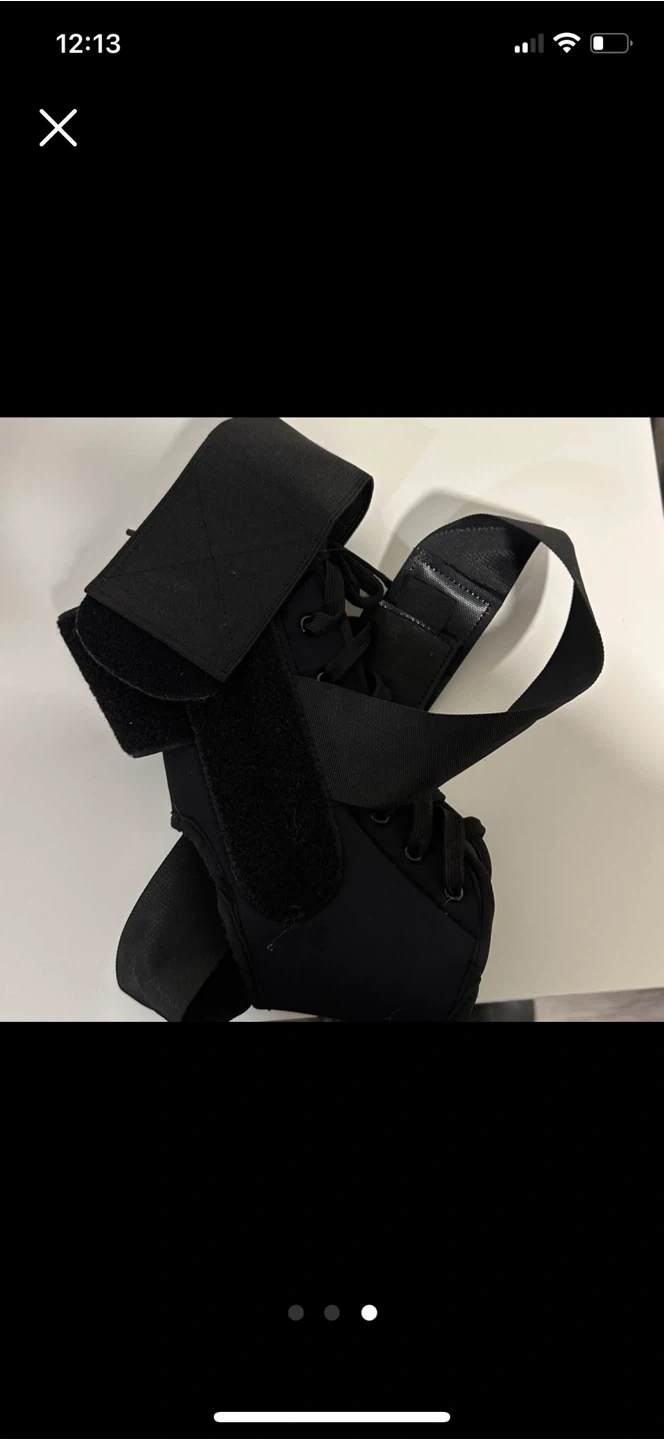 Selling a SNEINO ankle brace in great condition! It's an adjustable lace-up ankle brace in size US OS (One Size Medium). It's black and designed to provide ankle support, help with injury recovery, and improve exercise performance.
