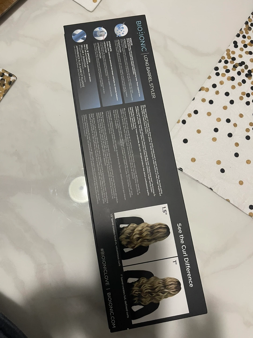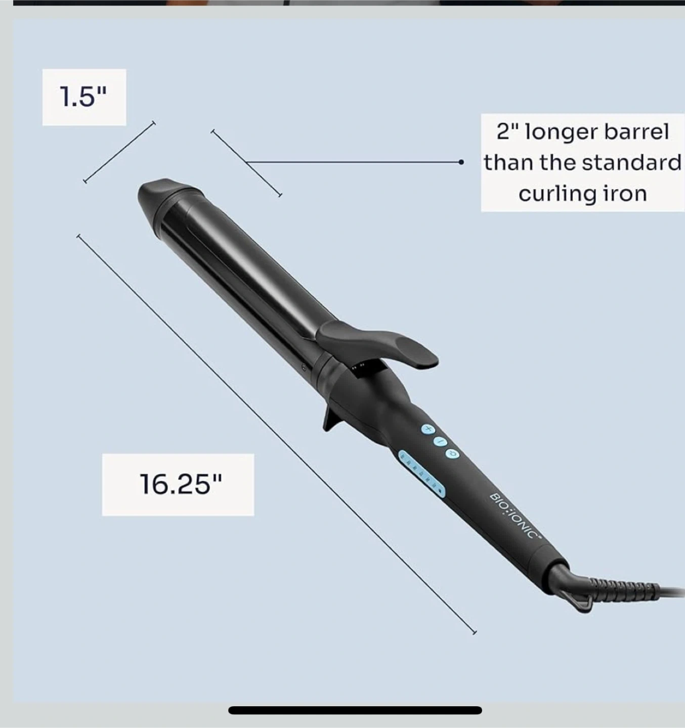 Selling a BIO IONIC 1.5" Pro Curling Iron. This is the Long Barrel Styler model. It has a 1.5" pro curling iron barrel size that creates lived-in styles. It also uses moisturizing heat technology conditions and boosts shine. The barrel is 2" longer than the standard curling iron.