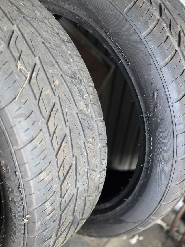 These are two low profile truck tires, sized at 285/45R22 114V XL, perfect for enhancing your truck's performance and look. These tires are in used condition, as seen in the images. They have some wear but still offer plenty of life for the road ahead.