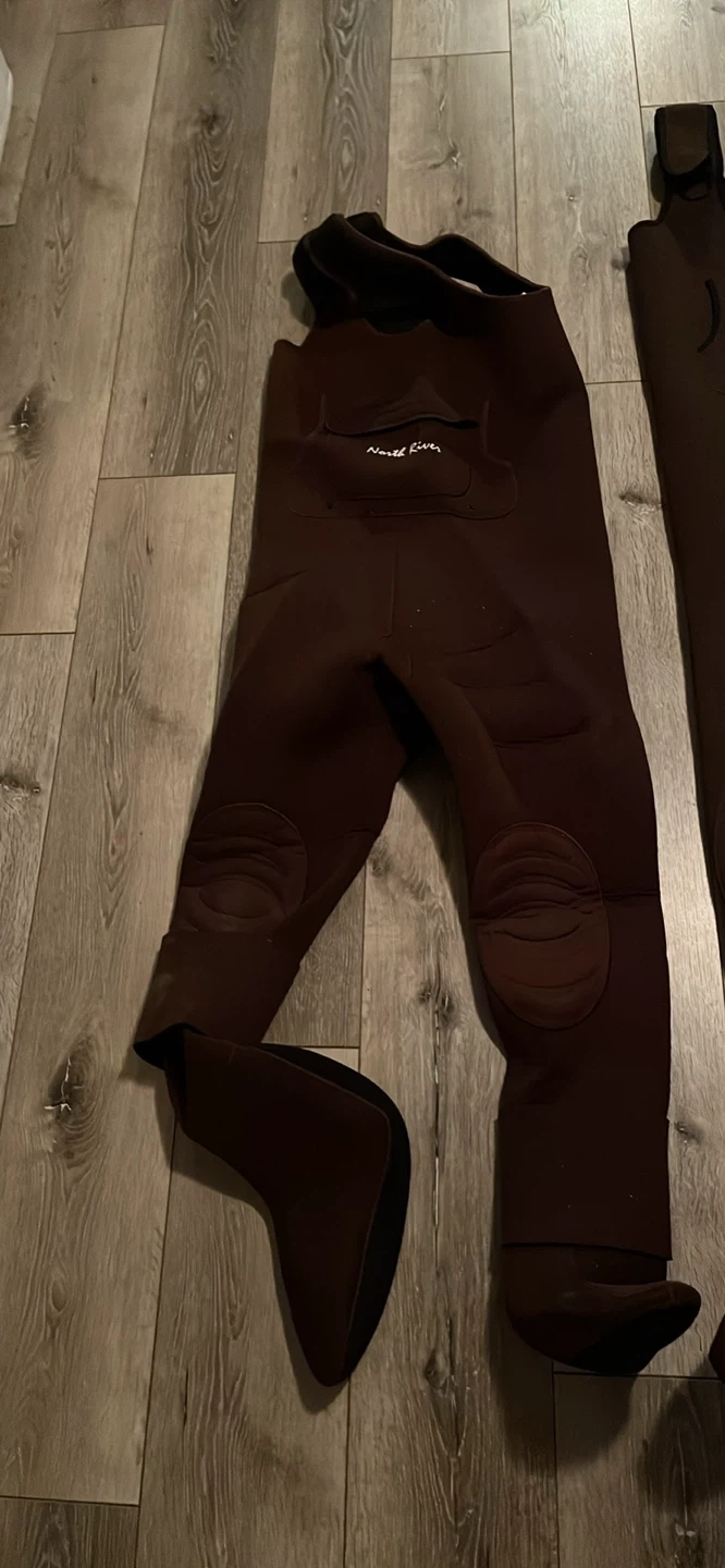 North river fishing waders little wrinkly still good and has a little bit of glitter on it but that will come off easy size M
