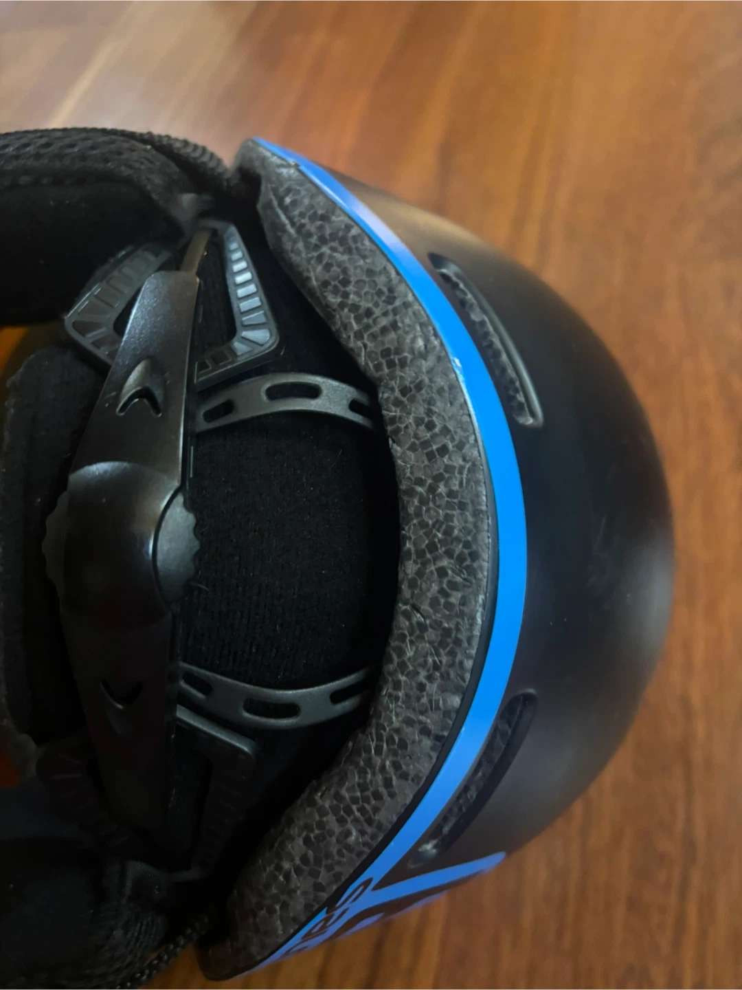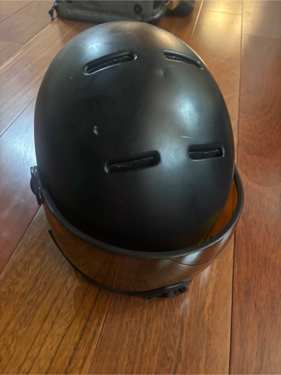 Selling a Salomon ski helmet that comes with a visor! It's black with blue accents. The visor is mirrored.