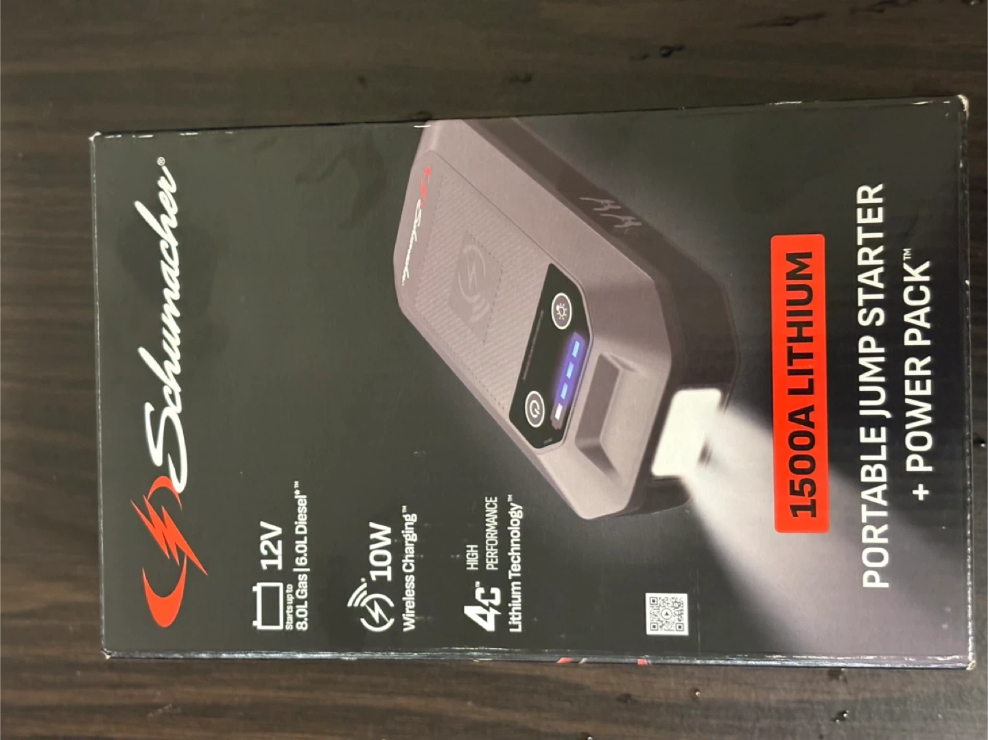 Selling a Schumacher 1500A Lithium Portable Jump Starter + Power Pack.