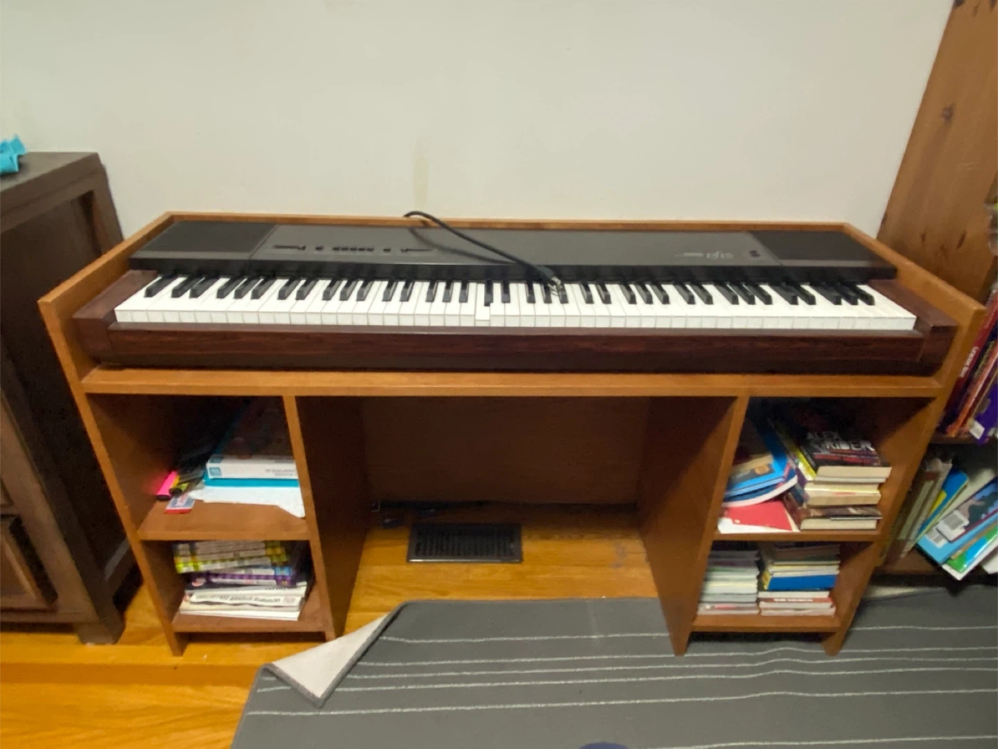 Selling a Yamaha PF15 electronic piano. It's in good condition and ready for a new musician to play. 88 keys with real piano feel. Headphone Jack for quiet enjoyment while others are sleeping. Comes with the wooden desk/ stand it is resting on in the photos. Other Items on the stand not included. Perfect for practicing or learning to play.