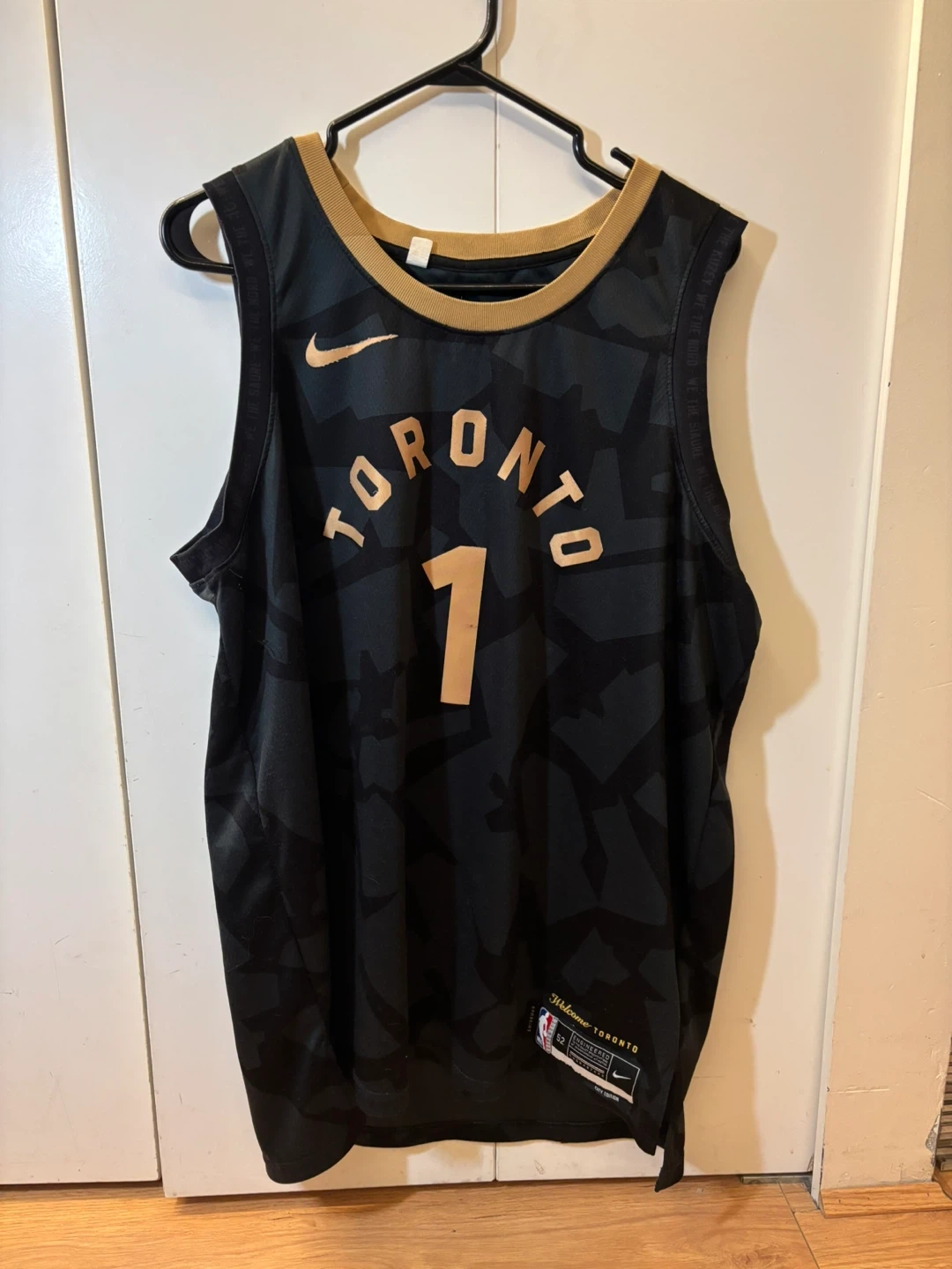 Selling a Nike Toronto Raptors City Edition jersey in size XL. It's in great condition and features the 'Welcome Toronto' design. Perfect for any Raptors fan!