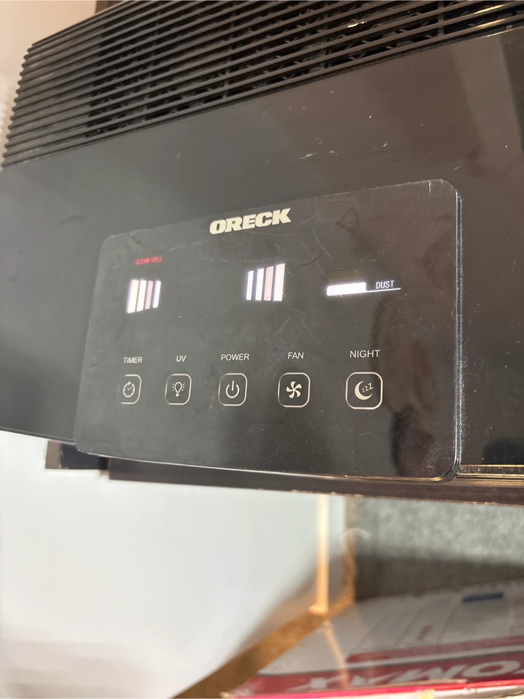 Selling an Oreck air purifier that's in great condition. It features settings for timer, UV, power, fan, and night mode. This unit is ready to help keep your air clean!