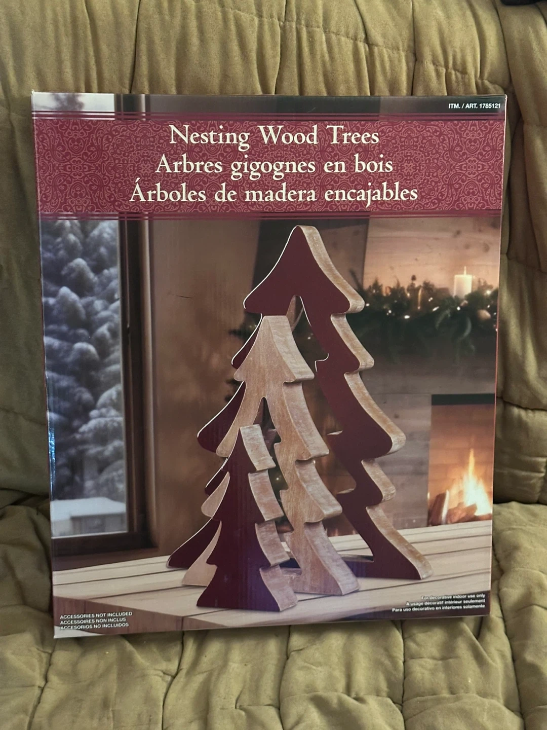 Add a touch of rustic charm to your home with these nesting wood trees! The set includes three trees of varying sizes: 45.3 cm (17.8 in), 34 cm (13.4 in), and 21.8 cm (8.6 in). Perfect for seasonal decorating or year-round display