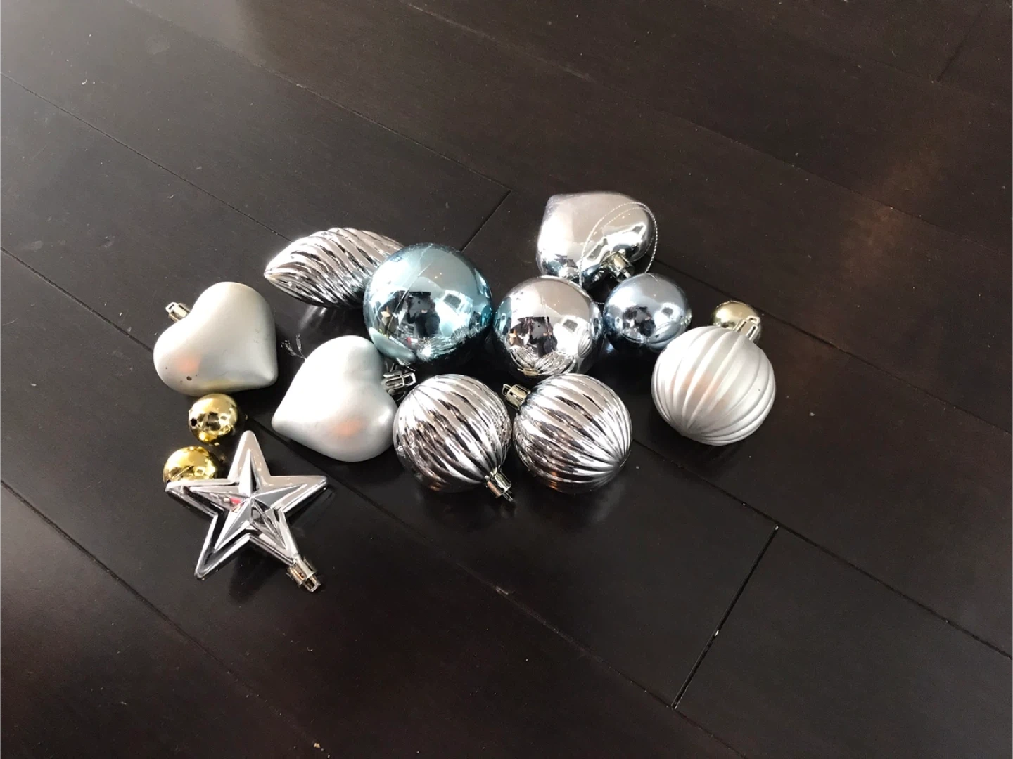 Selling a variety of Christmas and holiday decor items! Includes reusable shopping bags, a festive stocking, decorative tins, Santa hats, and assorted ornaments. Perfect for adding some holiday cheer to your home. Each Item $10.