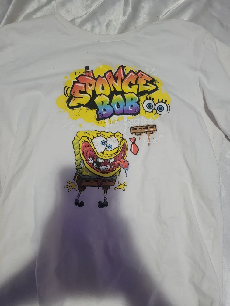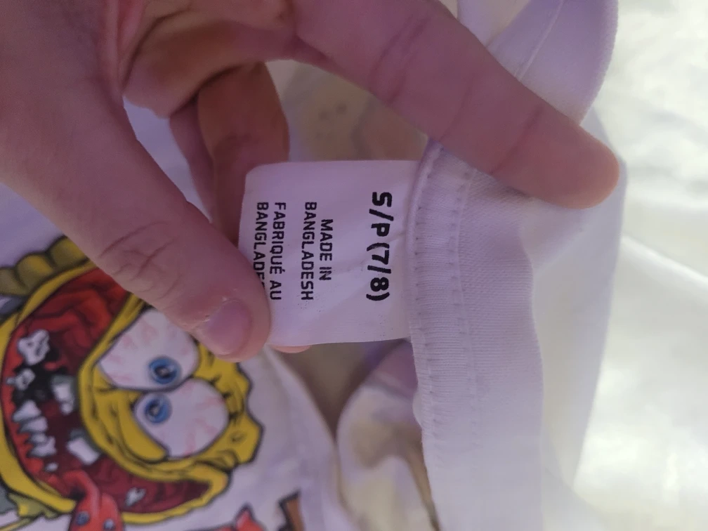 Selling a Spongebob Squarepants t-shirt. The size is S/P (7/8). It's in good condition and ready for a new owner!
