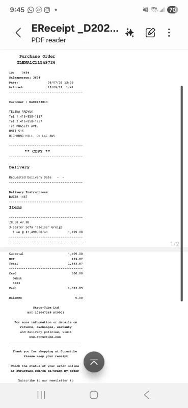 Selling a Structube Eloise tufted loveseat in greige! It's a beautiful piece that would look great in any living space. Originally bought for $1,499.00