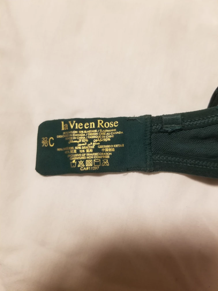 Selling a La Vie en Rose bra in size 32C. It's a beautiful green colour, new only been try on once. Perfect for everyday wear!