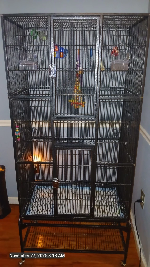 I have to get rid of it now! Make an offer?.Selling a spacious black bird cage that comes with a stand. It's perfect for giving your feathered friends plenty of room to move around and play. The cage is in good condition and ready for a new home!