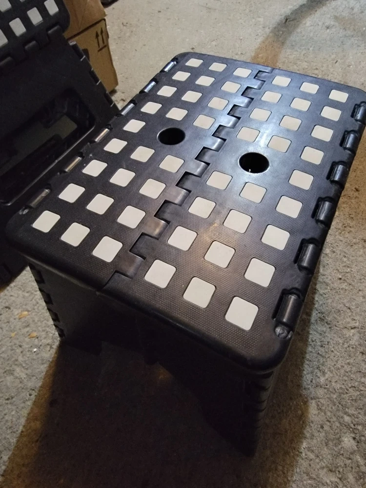 I have a couple of folding step stools for sale. They're super handy for reaching those high shelves in the garage or around the house. One is black and the other is blue. They're in good condition and ready to go!