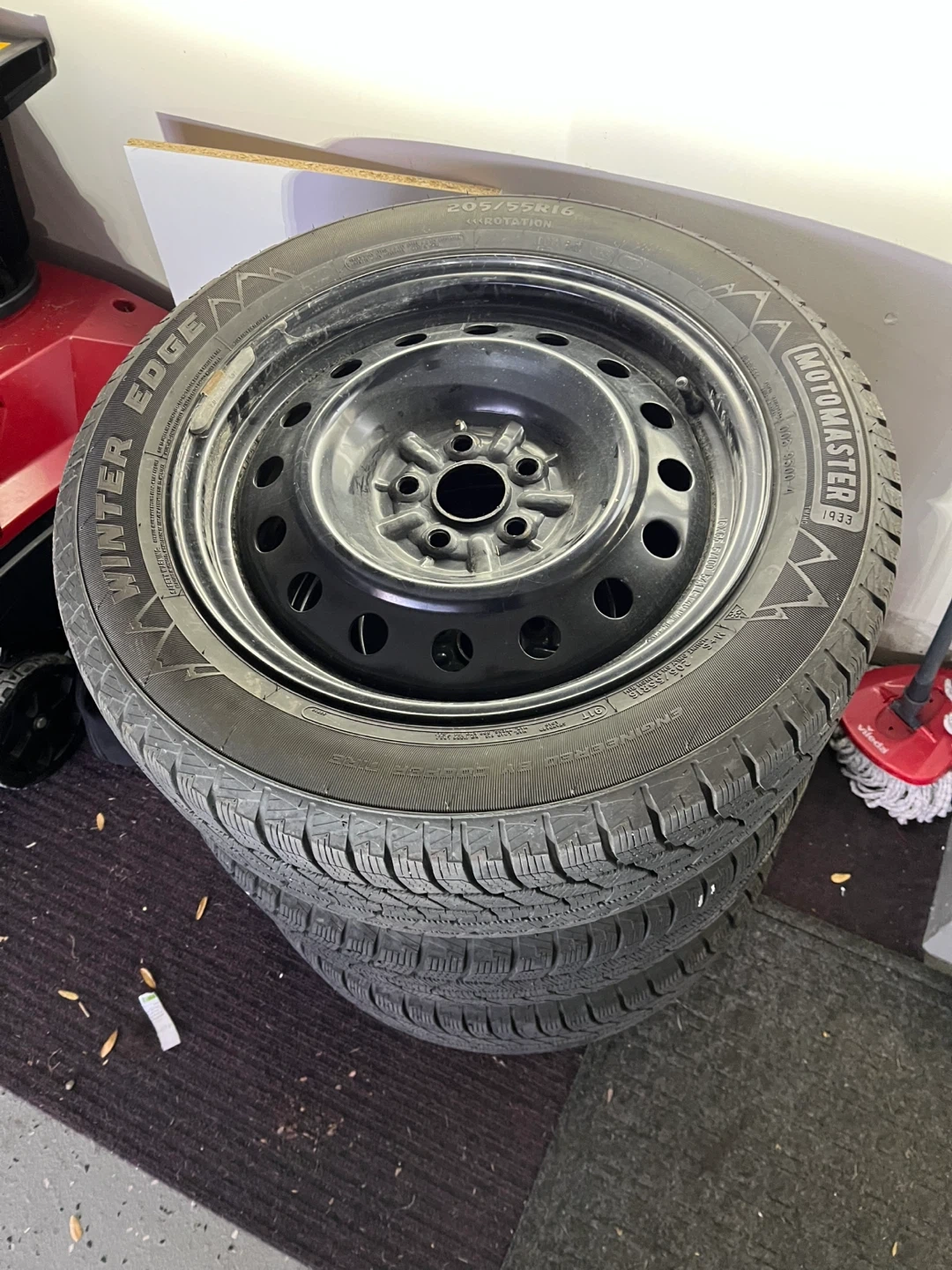 Selling a set of four Winter Motomaster Edge tires mounted on steel rims. 205/55/R16