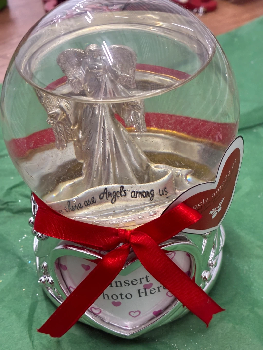 Buy & SellAngel Snow Globe - "There are Angels among us"Angel Snow Globe - "There are Angels among us"$10A lovely angel snow globe with a silver angel inside! The base has a spot where you can insert a photo. It has a red ribbon tied around it as well0 chats·0 favorites·1 viewsSELLERUPayLessCentennial Park200 reviewsWHERE TO MEETCloverdale Mall