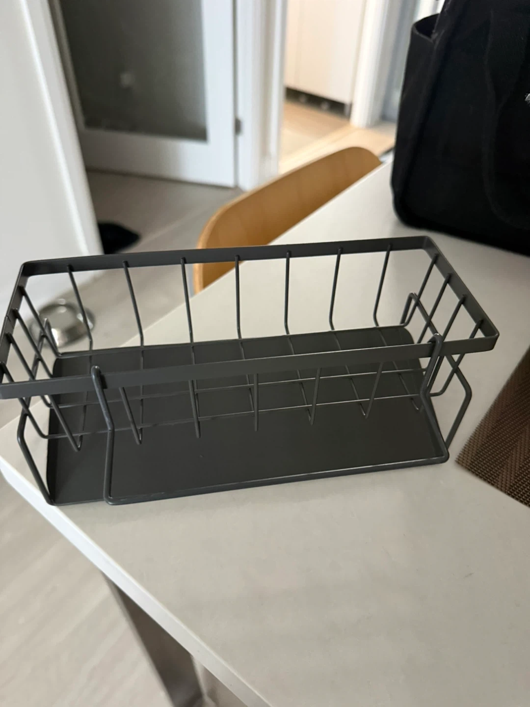 Selling a handy black metal sink caddy! It's perfect for keeping your sponges and dish soap organized right by the sink. It's in great shape and ready to help declutter your kitchen space